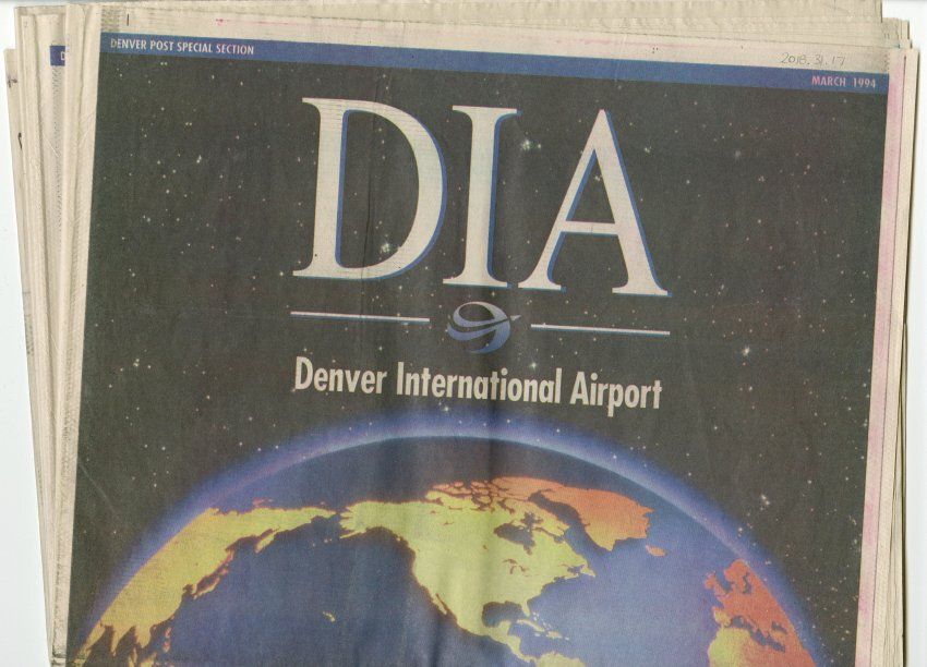 Newspaper section from the Denver Post from March 1994 covering Denver International Airport.