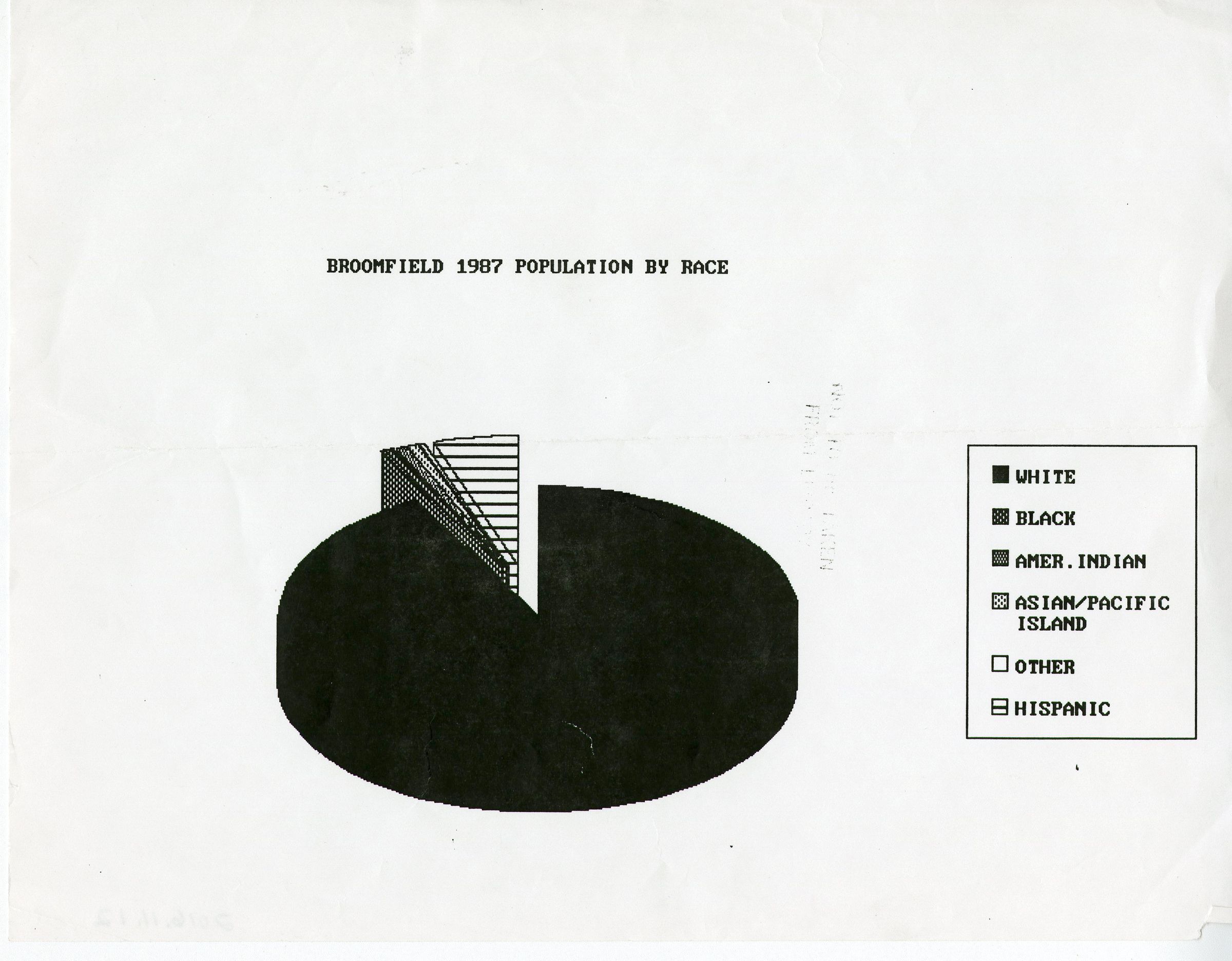 pie chart showing percentage of the Broomfield population by race from 1987. Printed in greyscale.