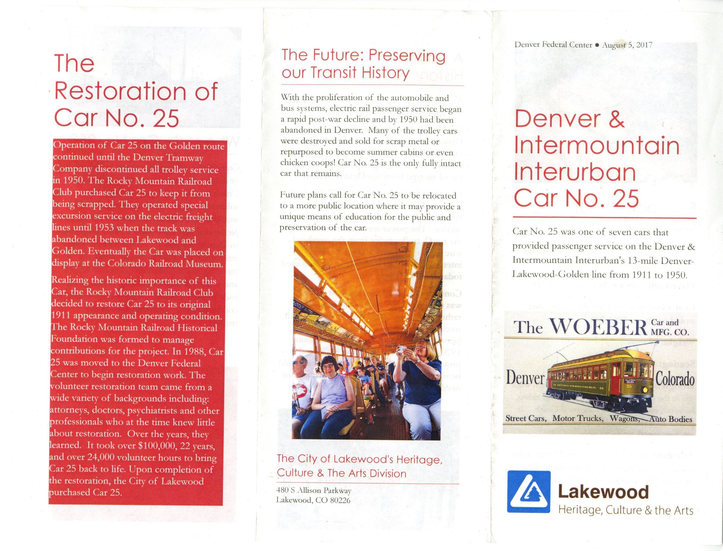Brochure for the Denver and Intermountain Interurban Car No. 25