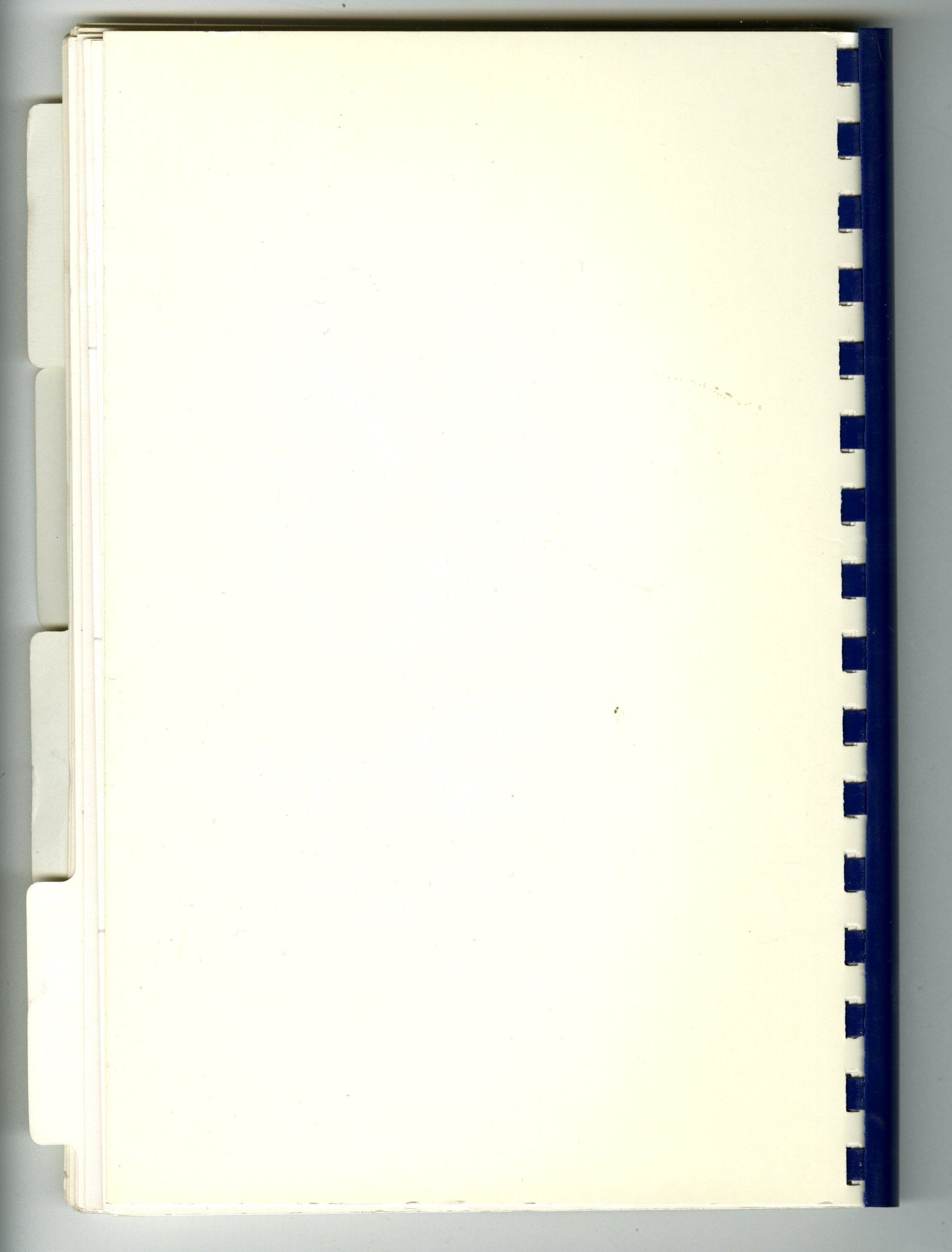 Physical Characteristics: 9" (H) x 6.75" (W). 91 pages plus index and additional pages of kitchen hints and advertisements.Front cover has color illustration of houses and roads in a community, back cover is blank. Blue comb binding.Collection
