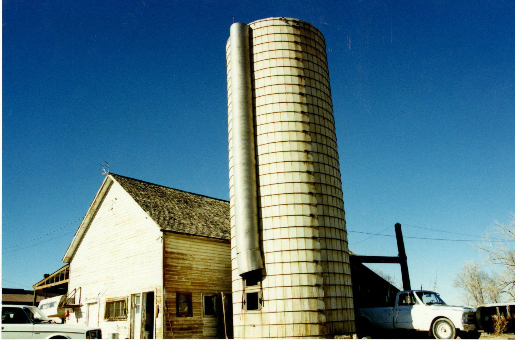 Photograph of the grain silo and the building next to it on the Brunner property.Photograph Details