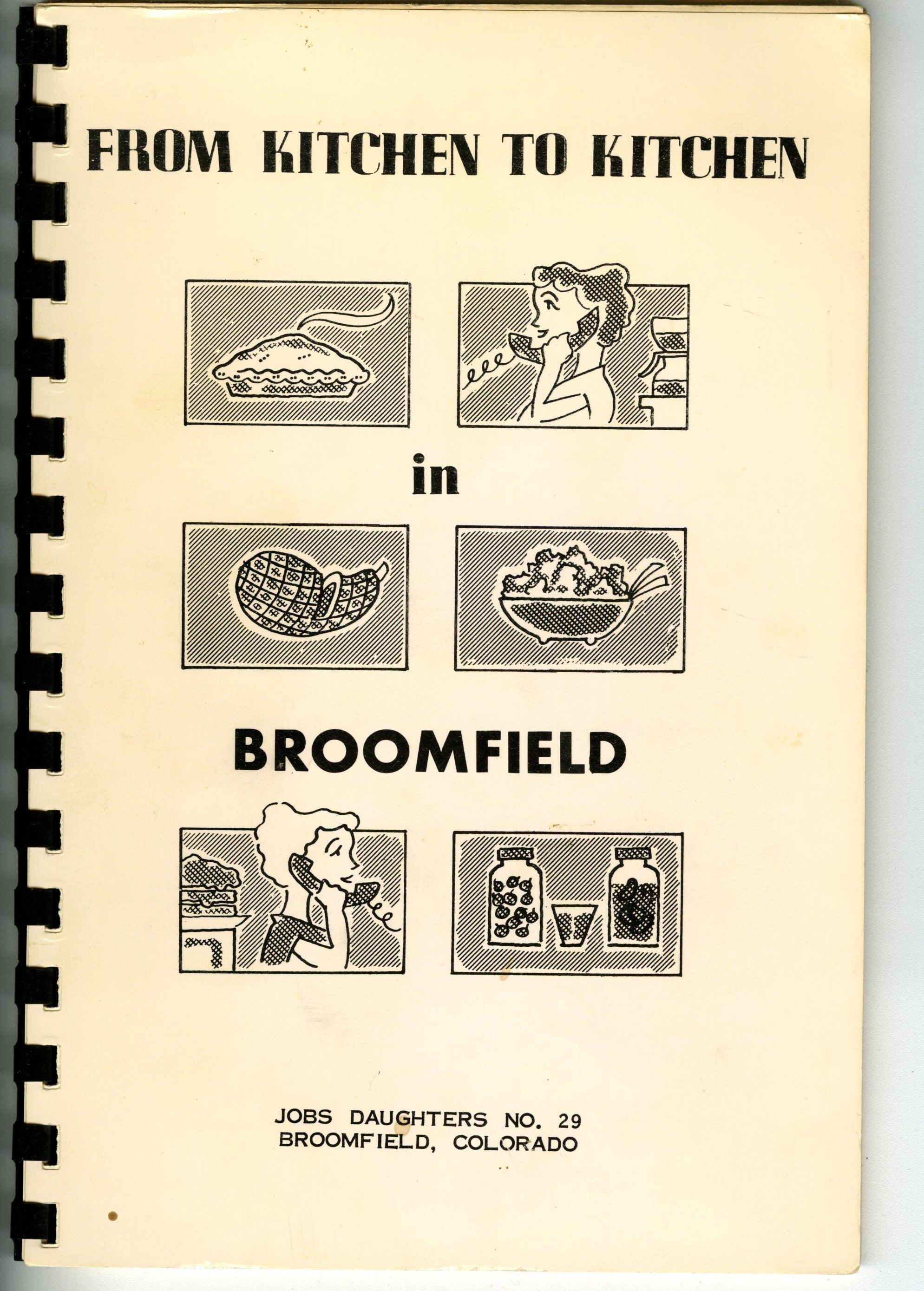 Collection of recipes from the Broomfield community. Each recipe has the name of woman who donated it. No date can be found within, year range a guess based on the types of phone numbers found in the advertisements.