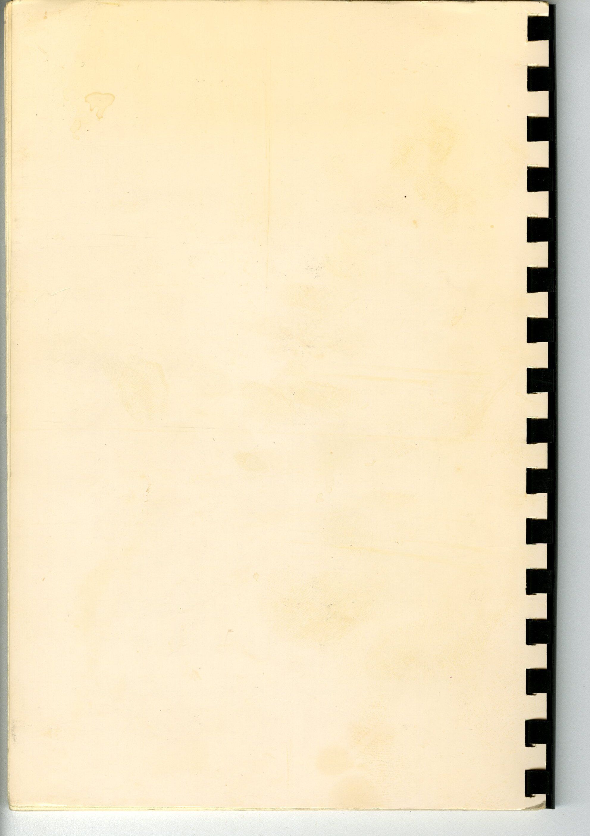 Physical Characteristics: This is a 38-page 9" (L) x 6" (W) book with black plastic comb binding. The cover is white with black lettering and black and white illustrations of food and two women talking on the telephone. The front and back covers are heavy-weight coated paper.