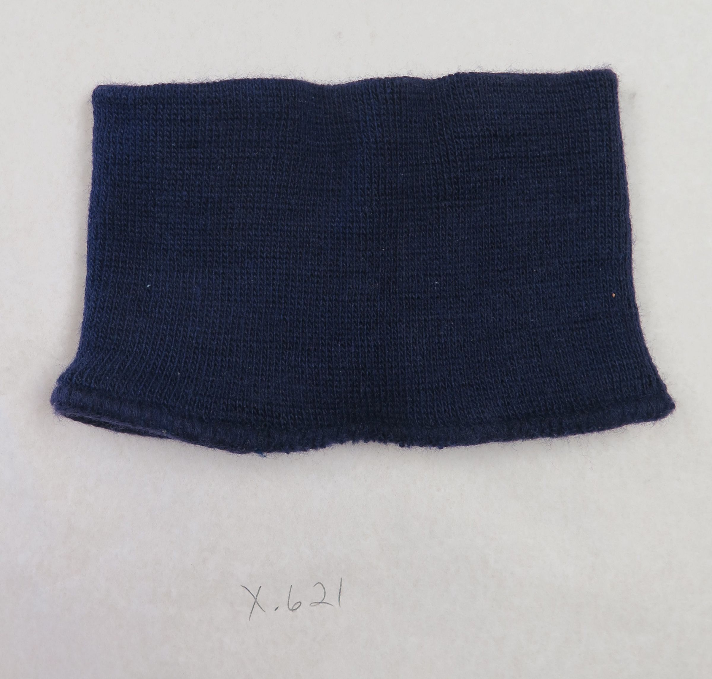 This is a blue knit collar or neck warmer. The neck warmer measures 5" (w) x 7.5" (l).