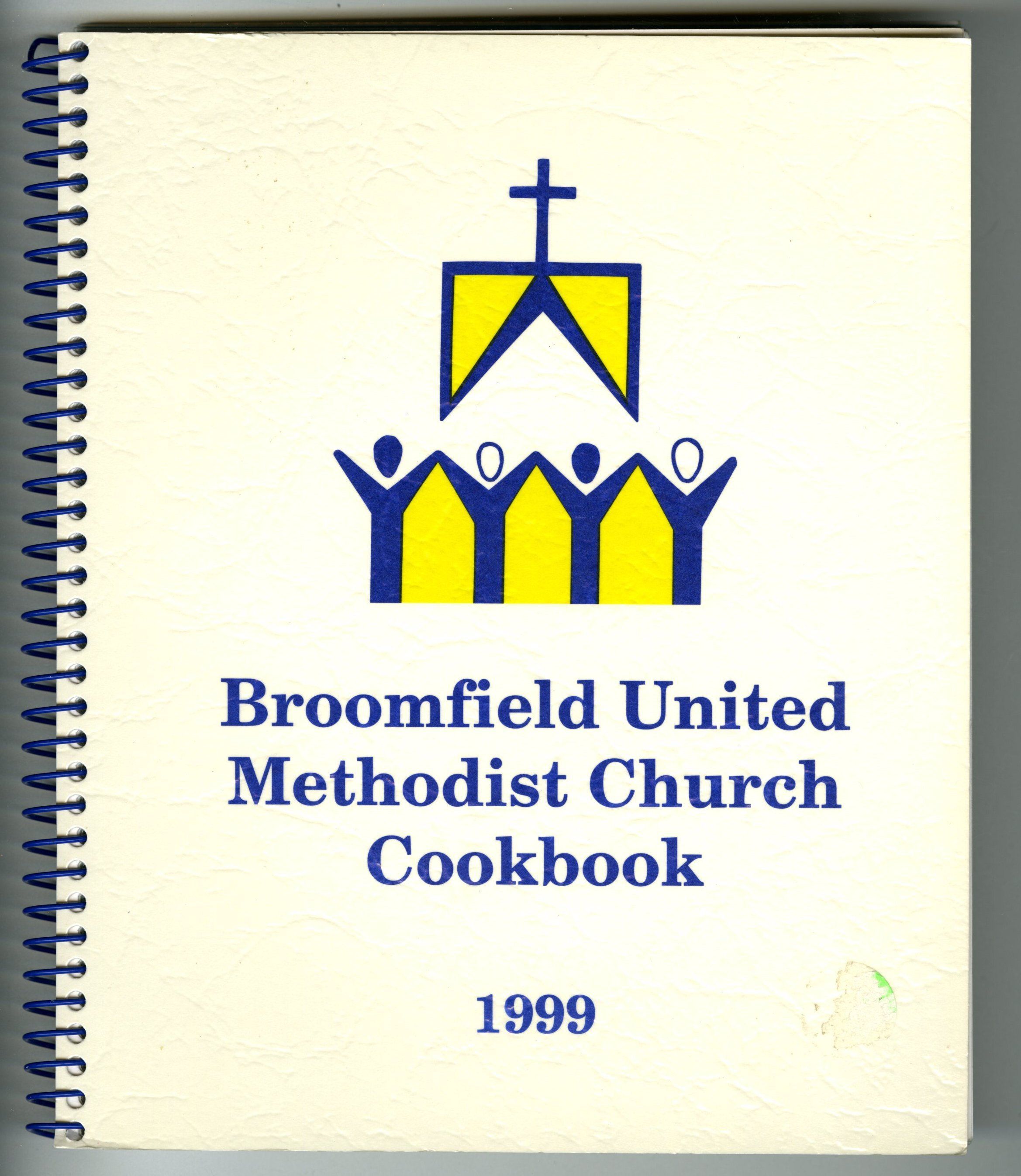 Cookbook with recipes compiled by members of the Broomfield United Methodist Church. Nine chapters, table of contents, index, and cooking tips. Chapters titled: "Appetizers, Beverages & Condiments;" "Breads;" "Cakes & Frostings;" "Cookies & Candy;" "Fish & Poultry Dishes;" "Beef & Pork Dishes;" "Pastries & Desserts;" "Salads;" and "Vegetables." Physical Characteristics: 8.5" (H) x 7.25" (W) x .5" (D), 120 pages. Blue comb binding, white laminated cover. Blue and yellow graphic in middle of front cover. Back cover blank.