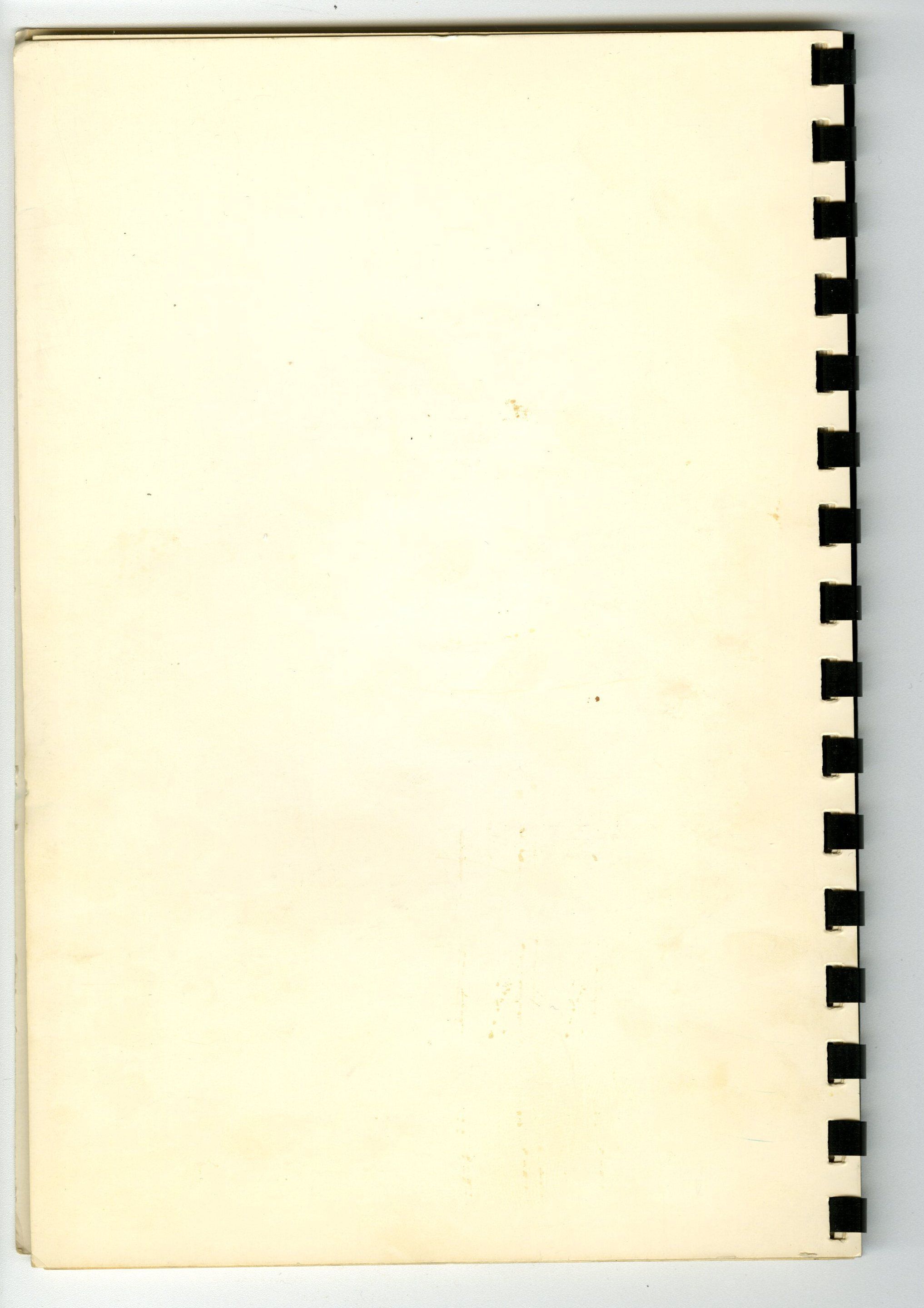 Physical Characteristics: 9" (H) x 6.25" (W), 34 pages. Black comb binding, coated white cardstock cover. Inscription in pen on the back of the front cover reads "With all my love/Mother Dear/ May 1, 1960/ LaFaunn Williams." A nameplate on the first page reads "Mrs. Russell S. Cade, 1099 Gilbert Street, Boulder, Colorado."Collection