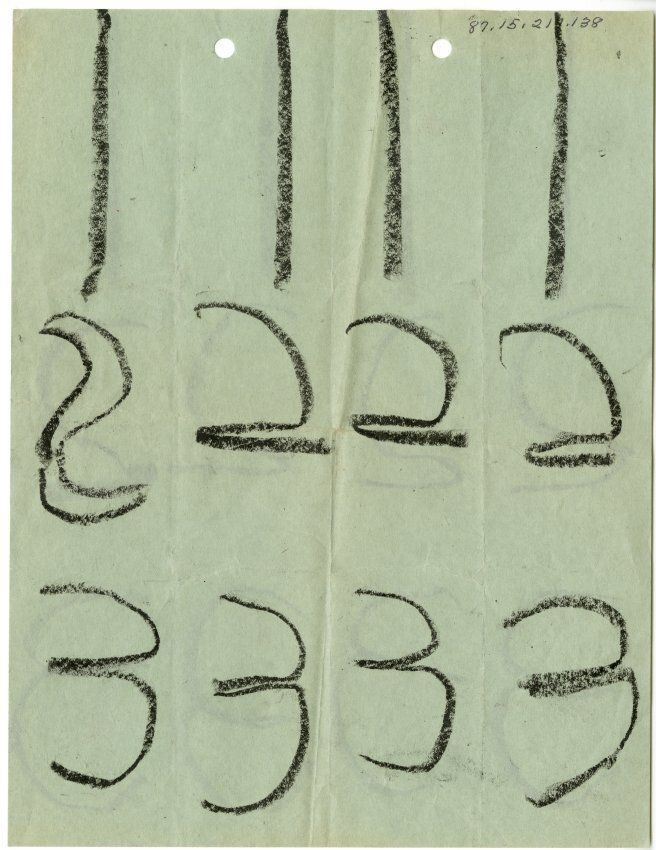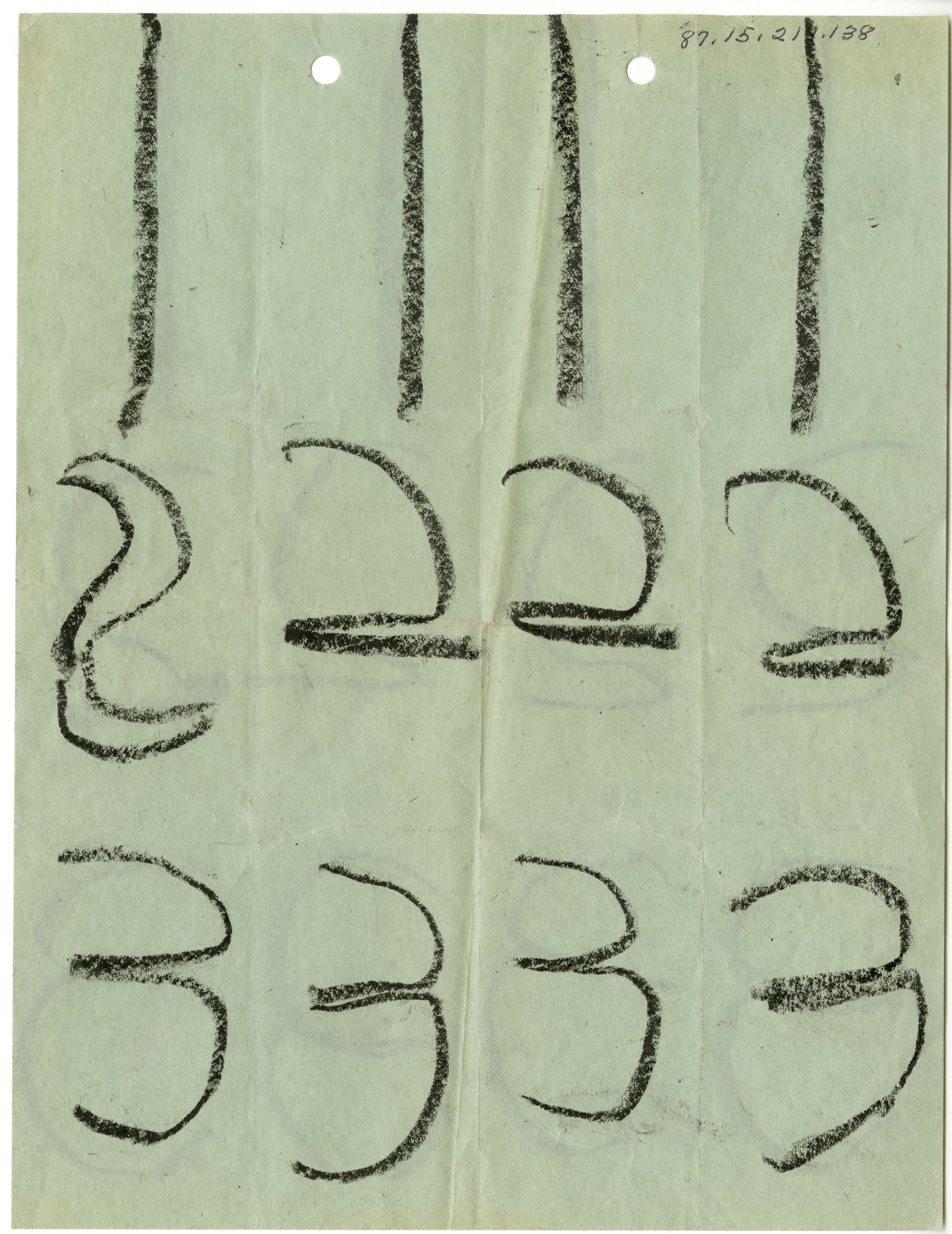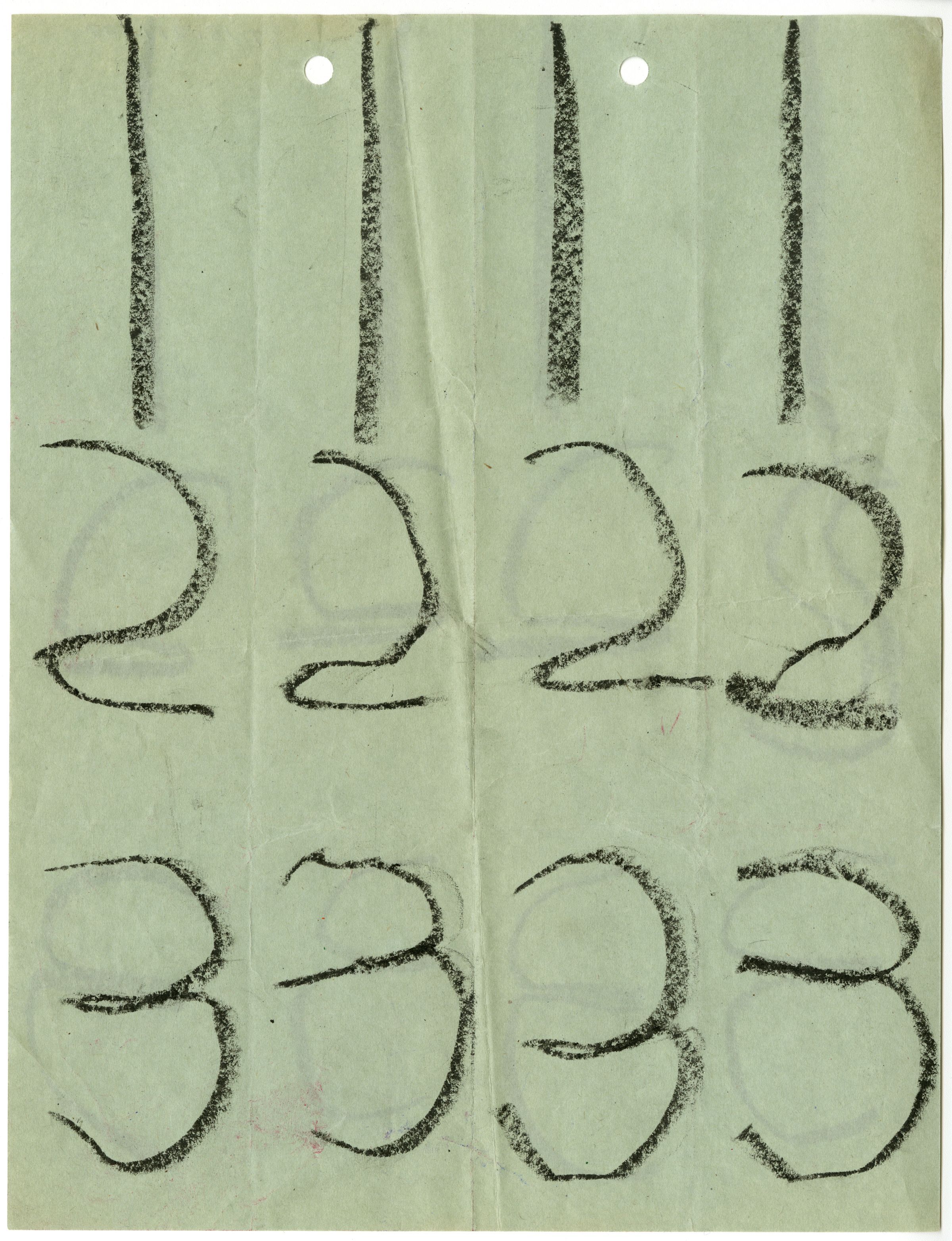 Numbers written on a green paper. Appears to be a child's practice. Believed to be written in crayon.