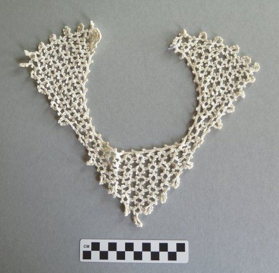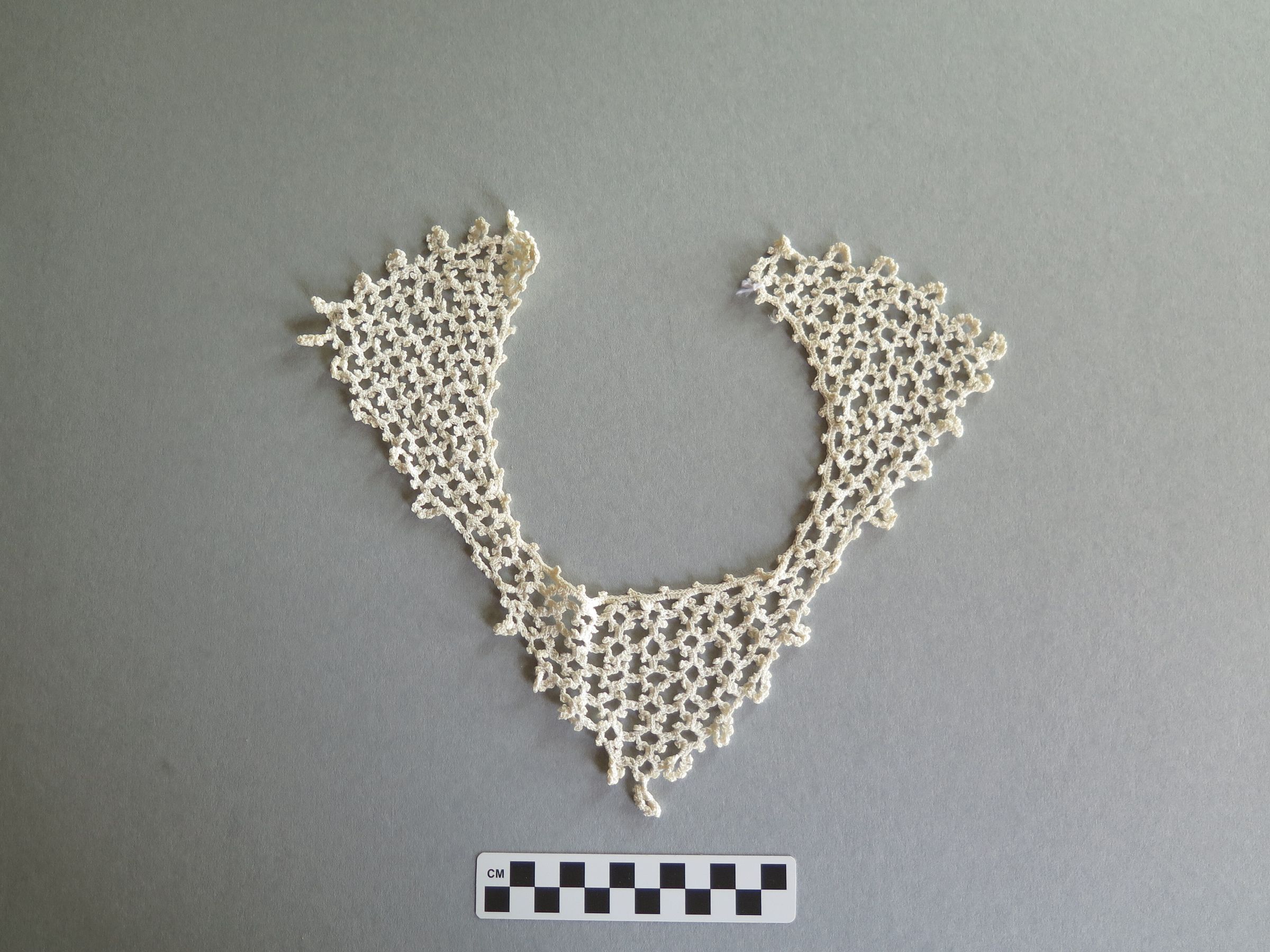White crocheted collar or dickey. The collar measures 6" (w) x 9" (l).