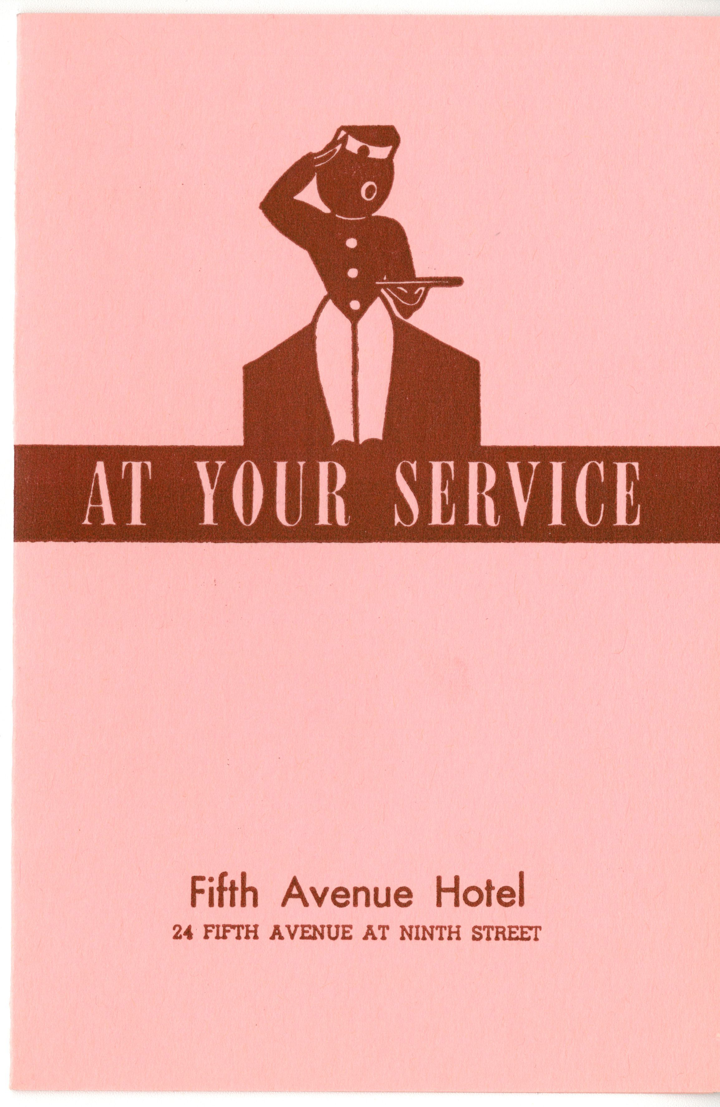 Pamphlet of services offered by the Fifth Avenue Hotel.
