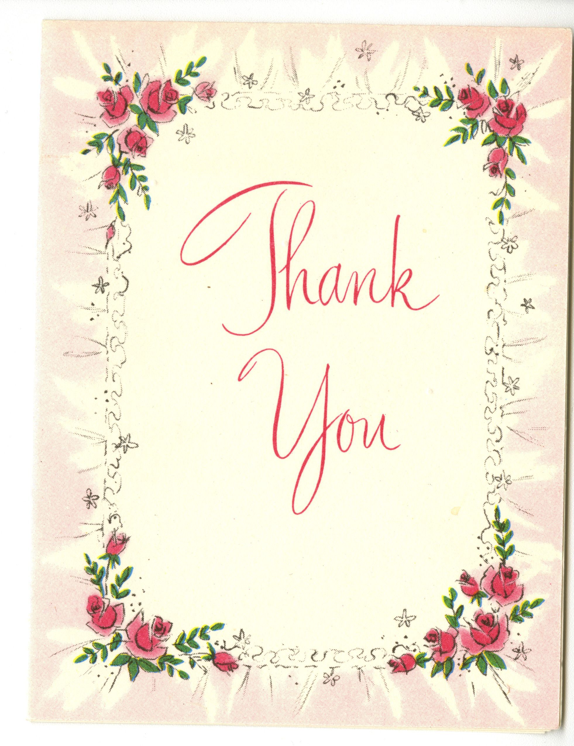 Front has a flowered border surrounding the words "Thank you." Inside has the typed letter, the signature is signed.Collection