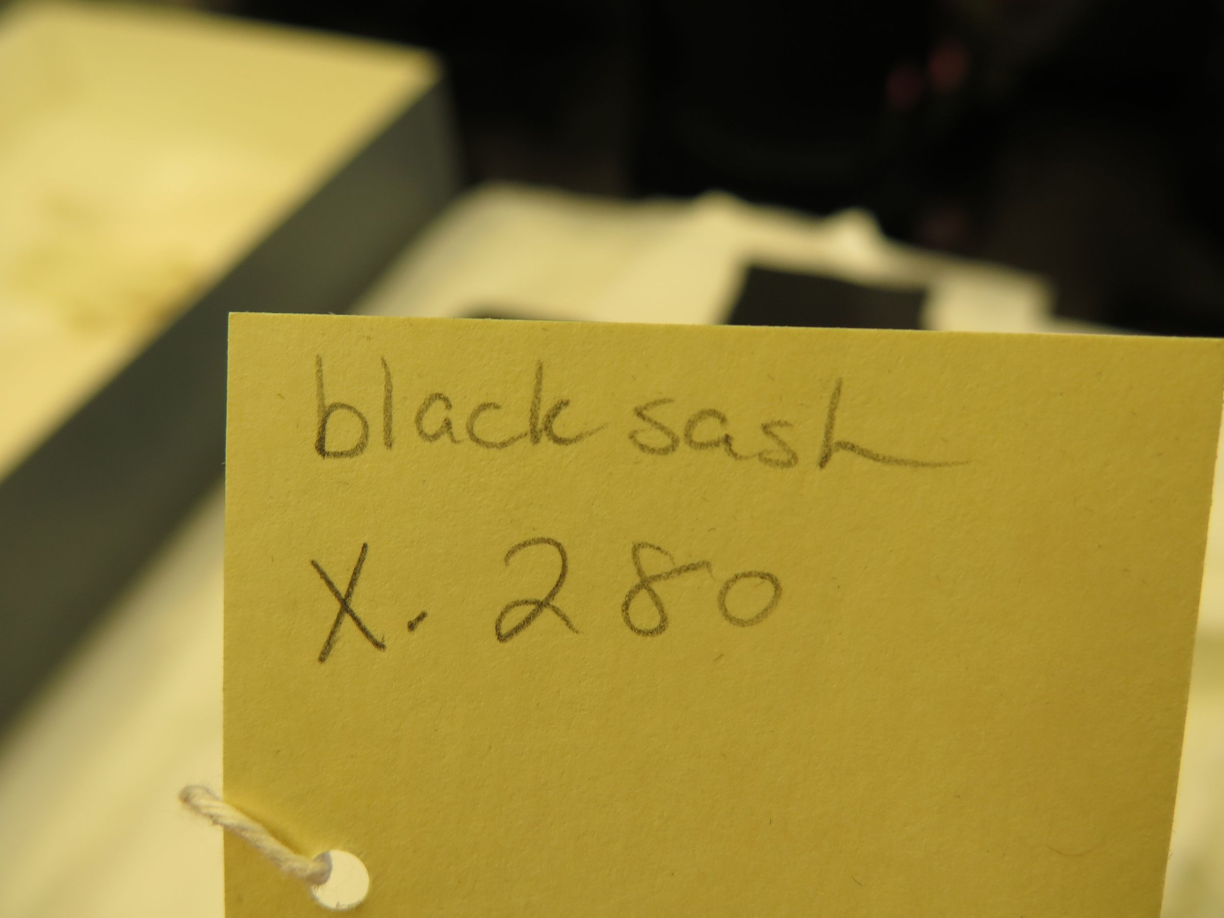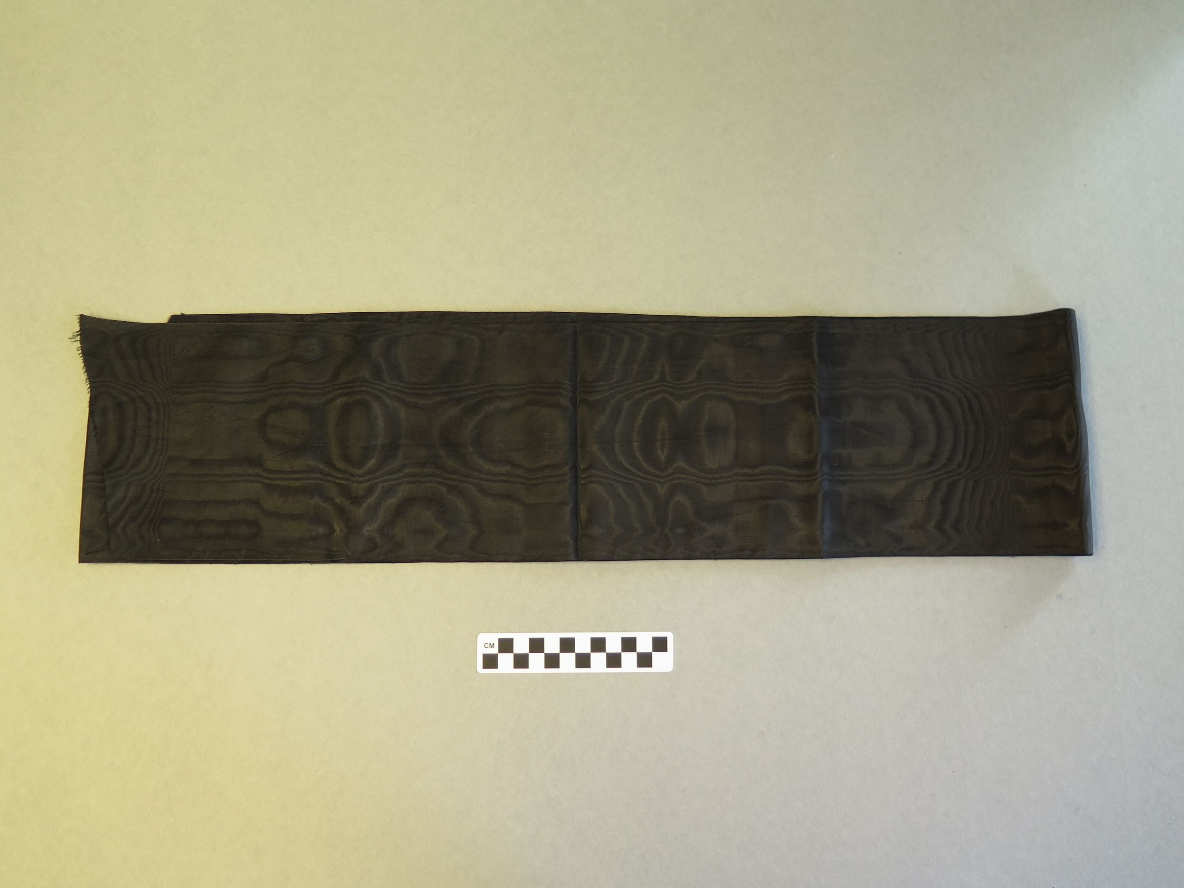 This is a black sash. The sash measures 6.5" (w) x 107" (l). Note: This sash matches wedding ensemble 2009.3 (KSteinberg 11/11/2015).