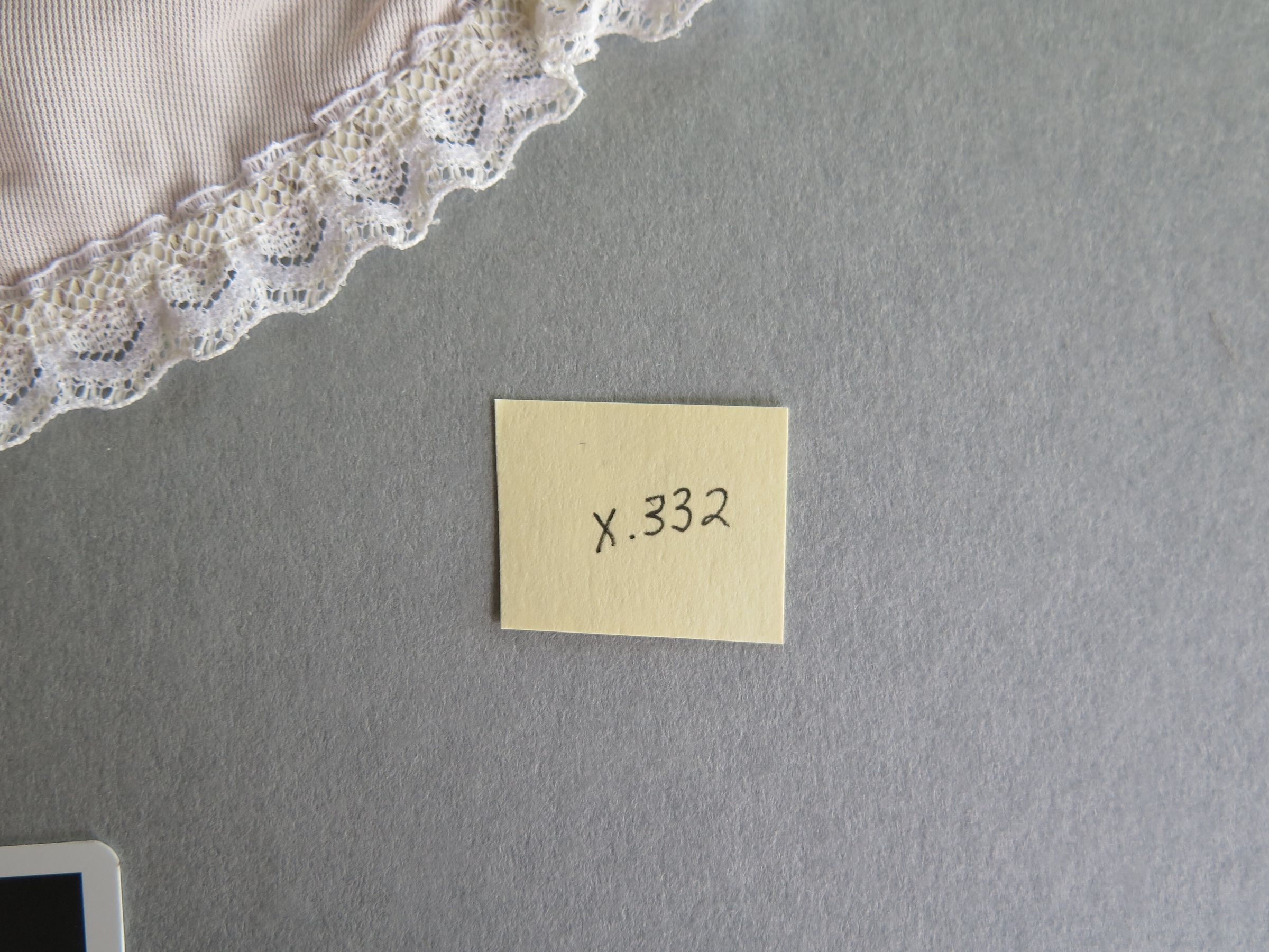 Note: There was a dermestid infestation discovered during the 2015 inventory in this box, this item was not damaged excessively. All textiles in the box were vacuumed and frozen (APixley 7/18/2017).