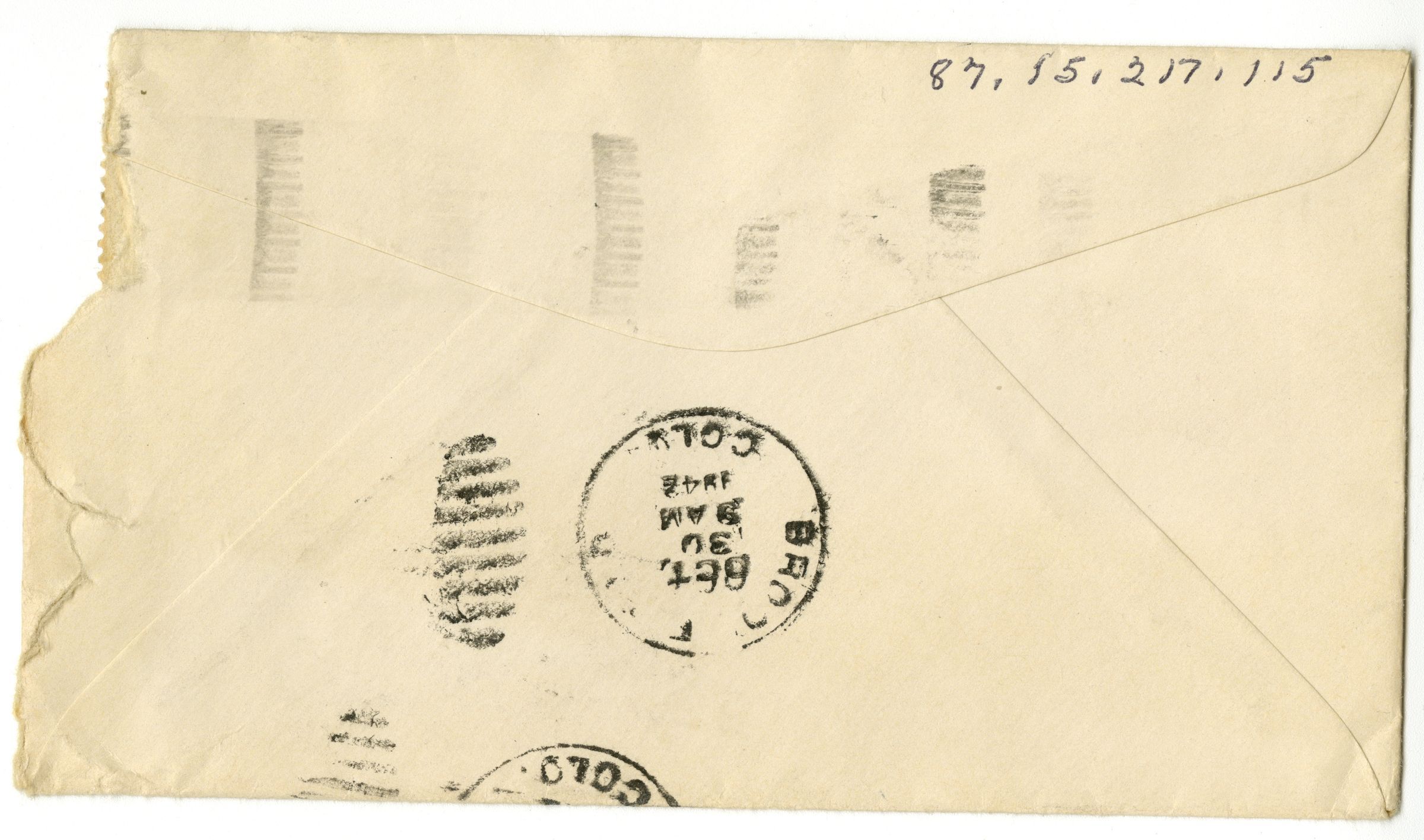 On back: Postal stamp: Broomfield Colo, 1942.Collection