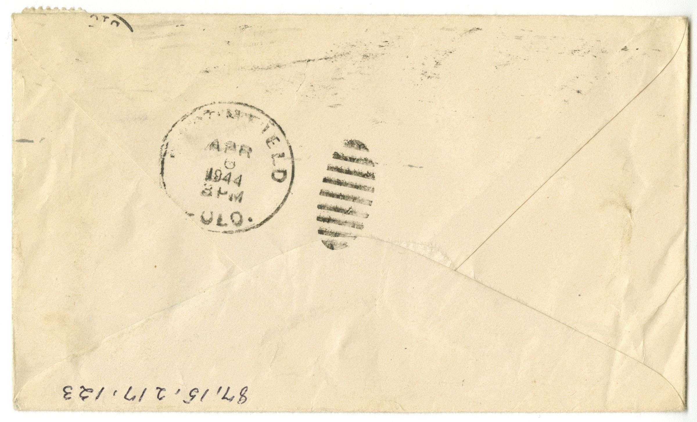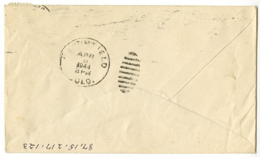 On back: Postal stamp from Broomfield, Apr 6, 1944.Collection
