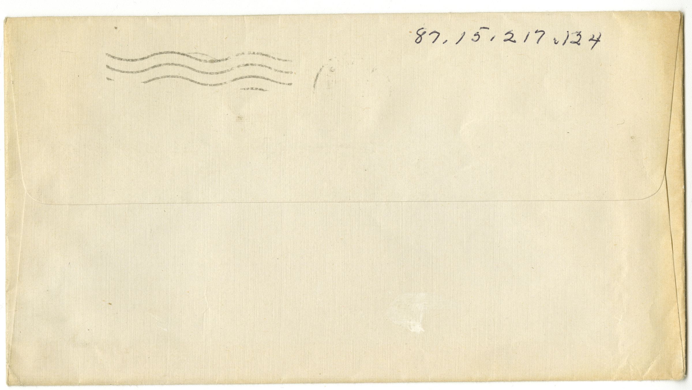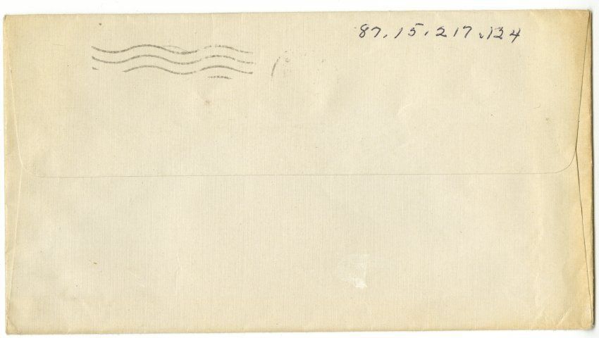 On back: The wavy lines of a postal stamp, but no location.Collection