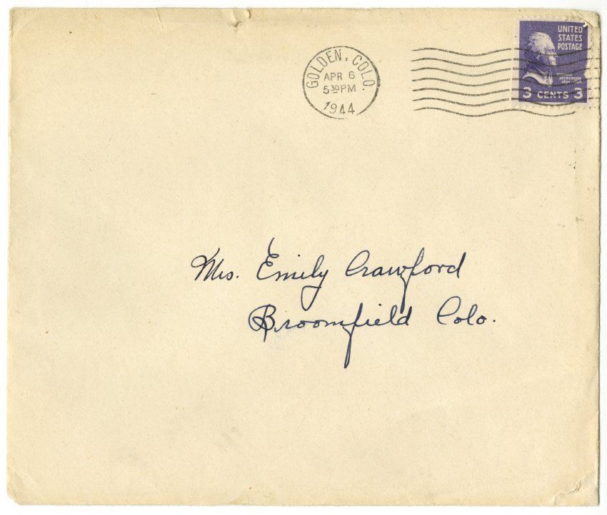 Recipient address: Mrs. Emily Crawford, Broomfield Colo.