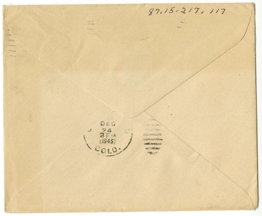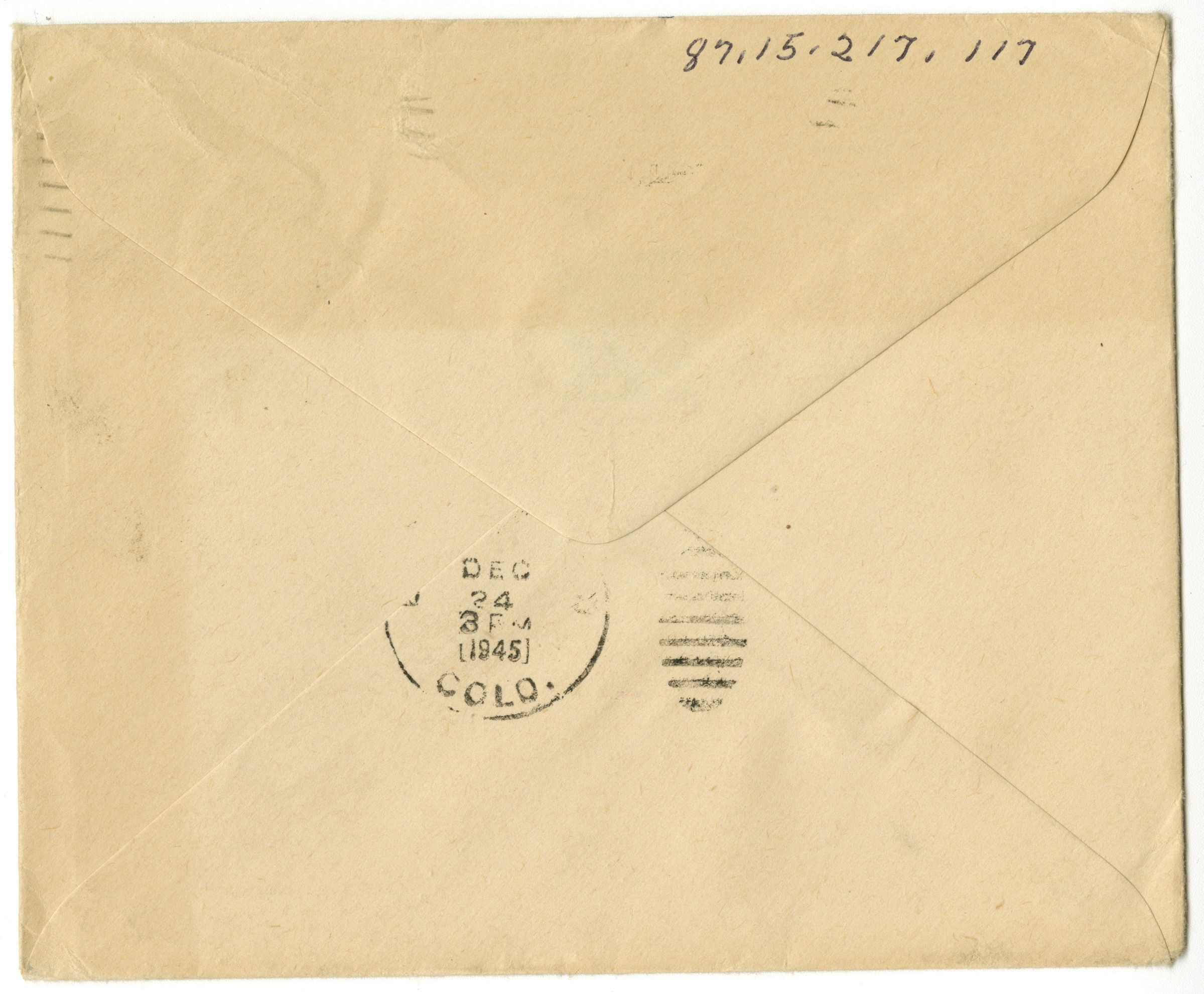 On back: Postal stamp from Colorado, Dec 24, 1945.Collection