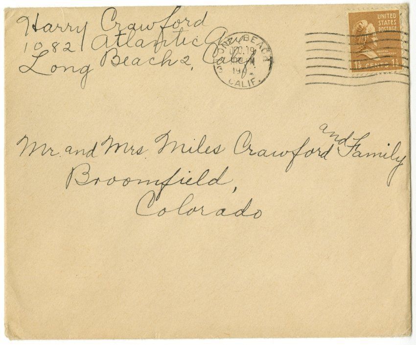 Return address: "Harry Crawford, 1082 Atlantic Ave, Long Beach 2, Calif."