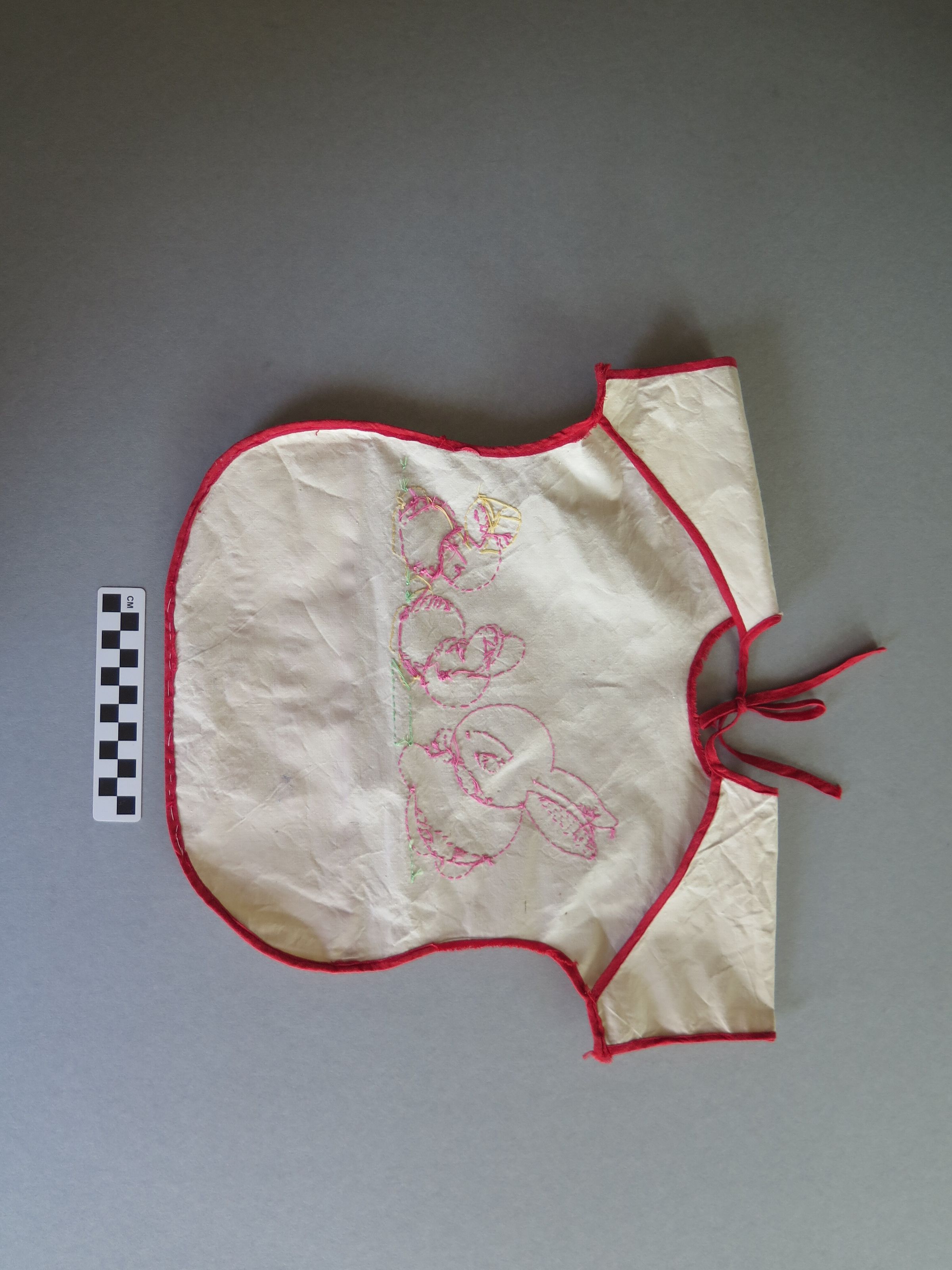 Note: There was a dermestid infestation discovered during the 2015 inventory in this box, this item was not damaged excessively. All textiles in the box were vacuumed and frozen (APixley 7/18/2017).