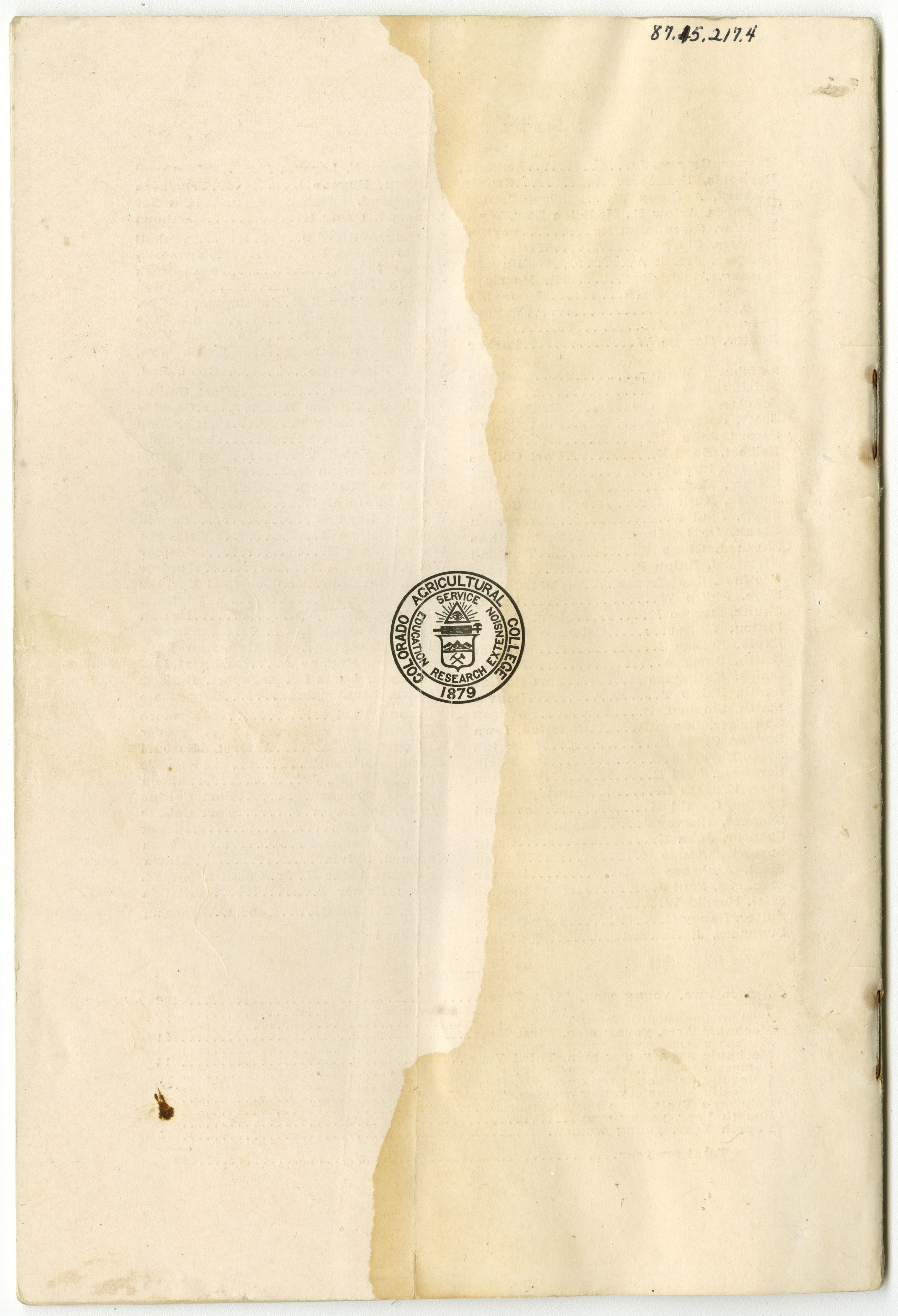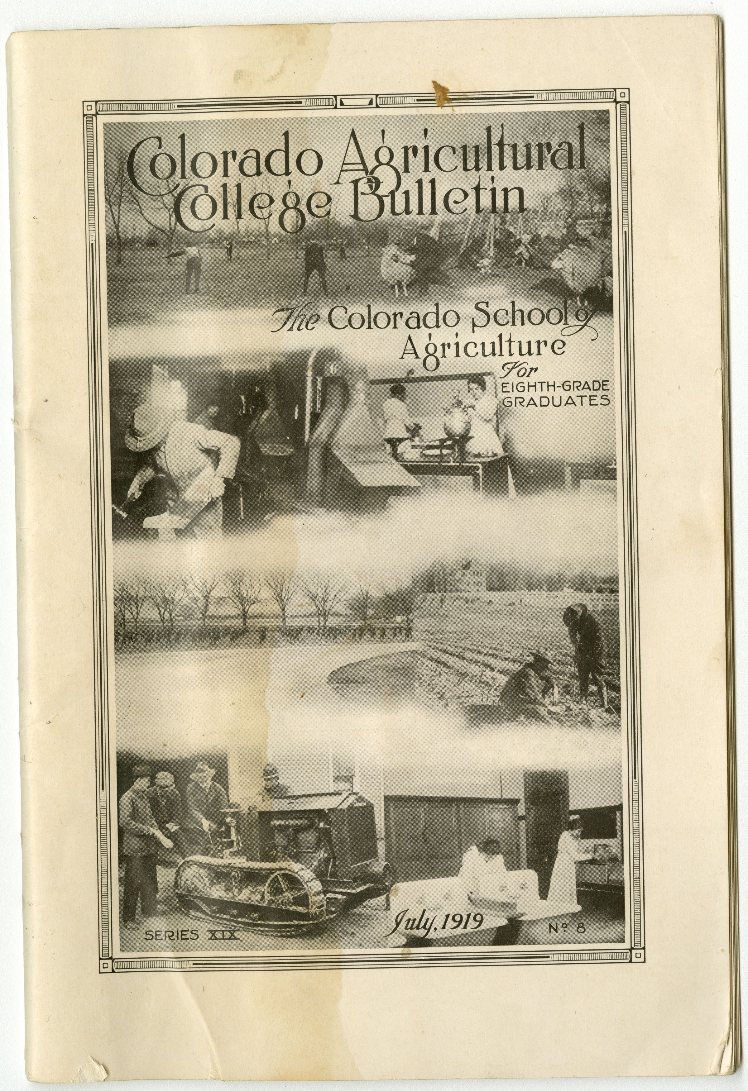 Colorado Agricultural College Bulletin. The Colorado School of Agriculture for Eigth-Grade Graduates. July 1919. Several pages of information about the school's courses of study.