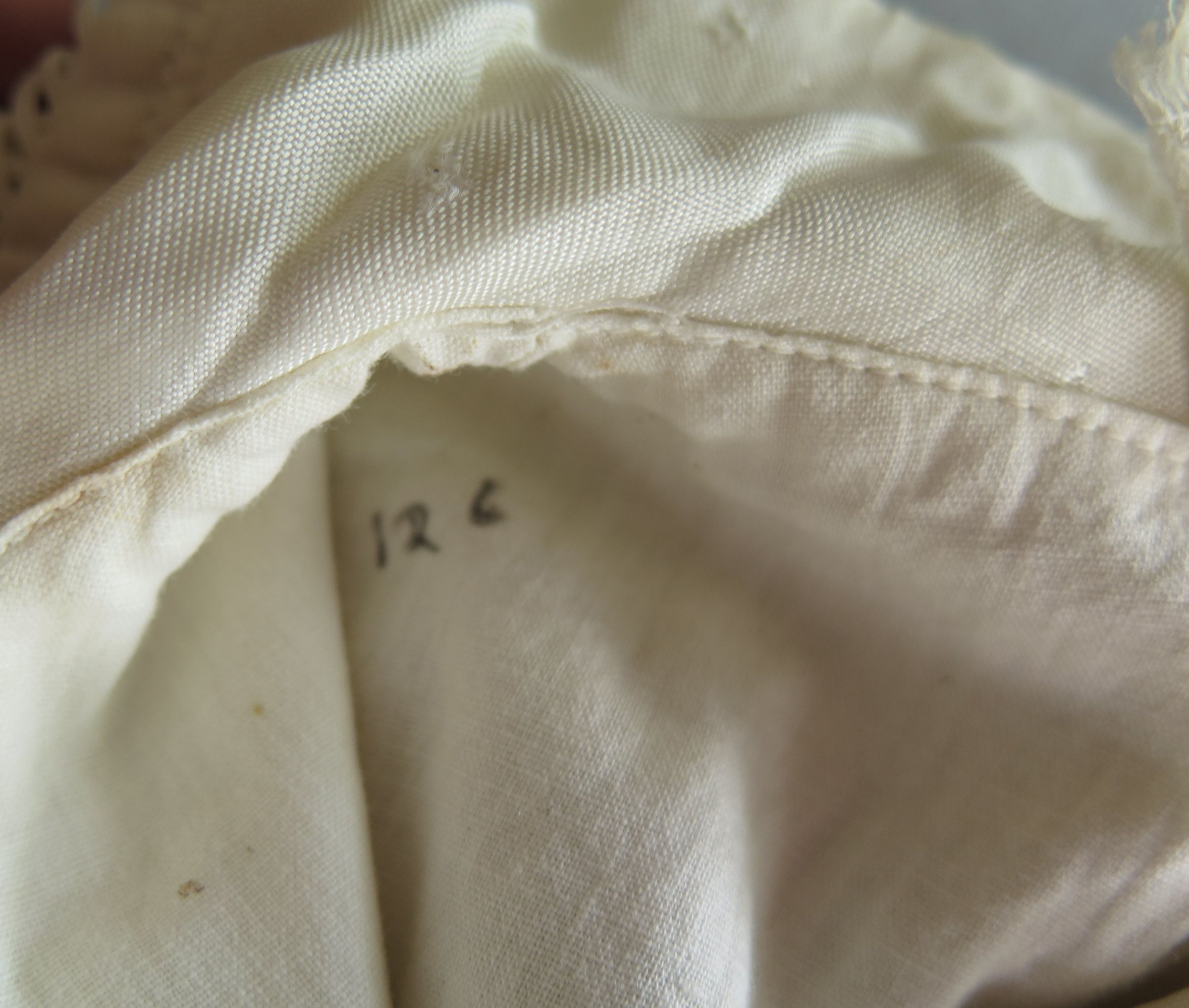 Note: There was a dermestid infestation discovered during the 2015 inventory in this box, this item was not damaged excessively. All textiles in the box were vacuumed and frozen (APixley 7/18/2017).