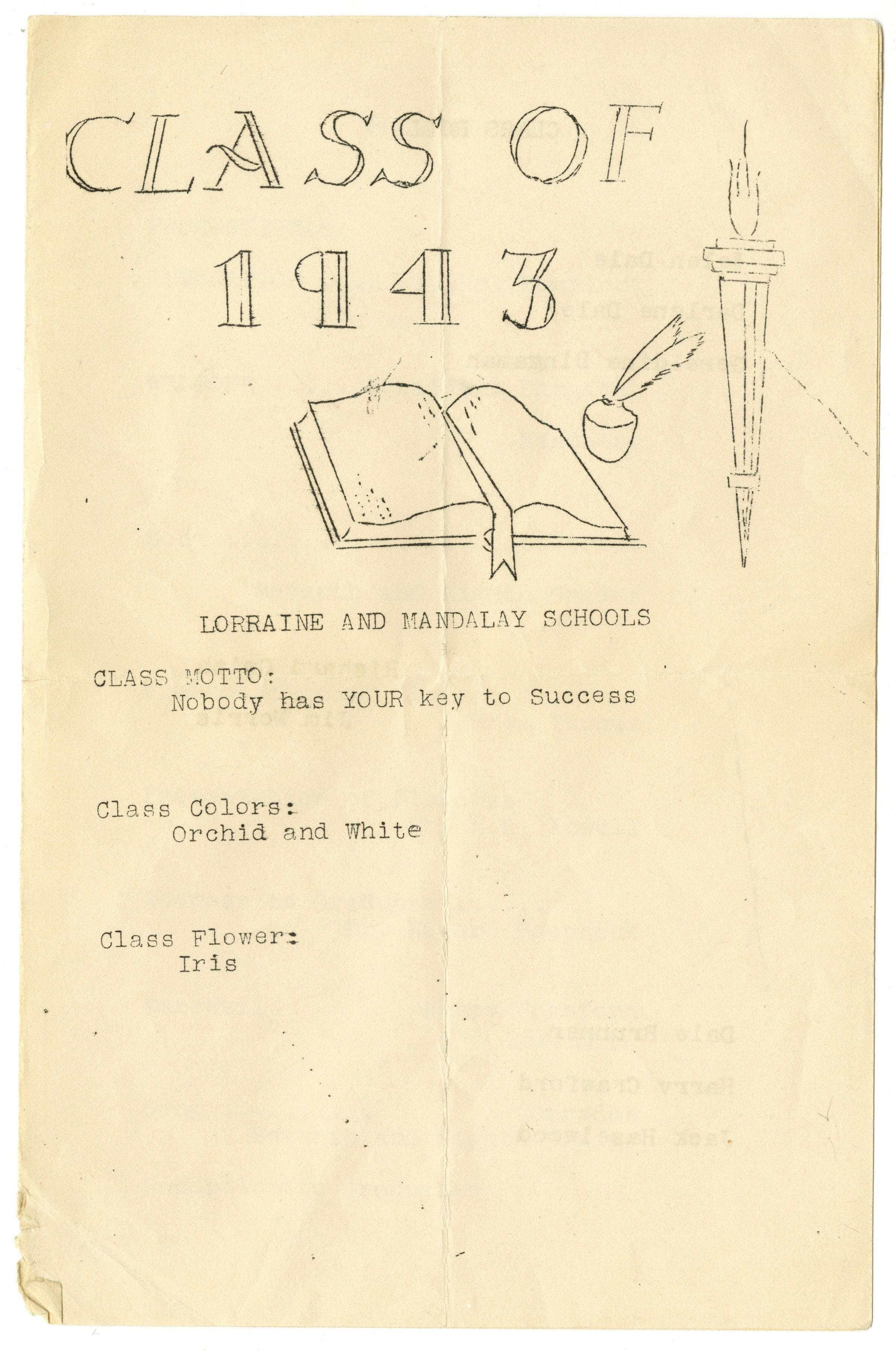 Class of 1943 Lorraine and Mandalay Schools Graduation Program.