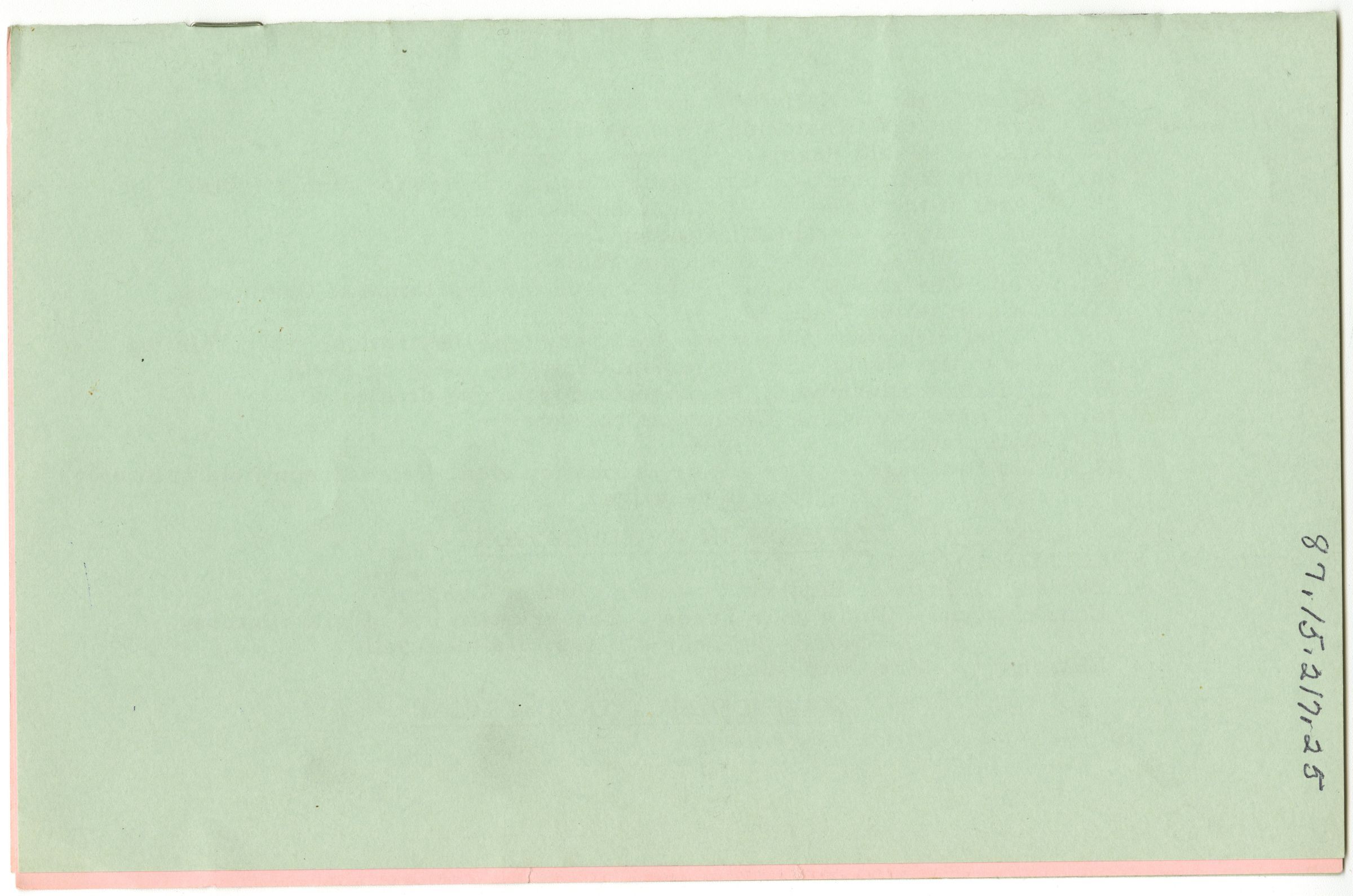 Green booklet with pink pages inside.Collection