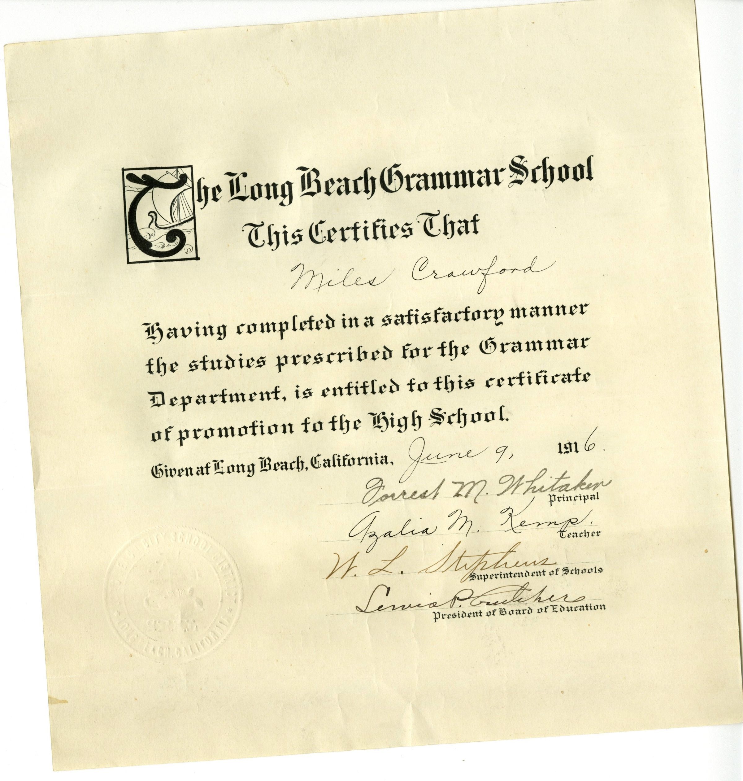 Certificate, AchievementNomenclature Primary Object Term