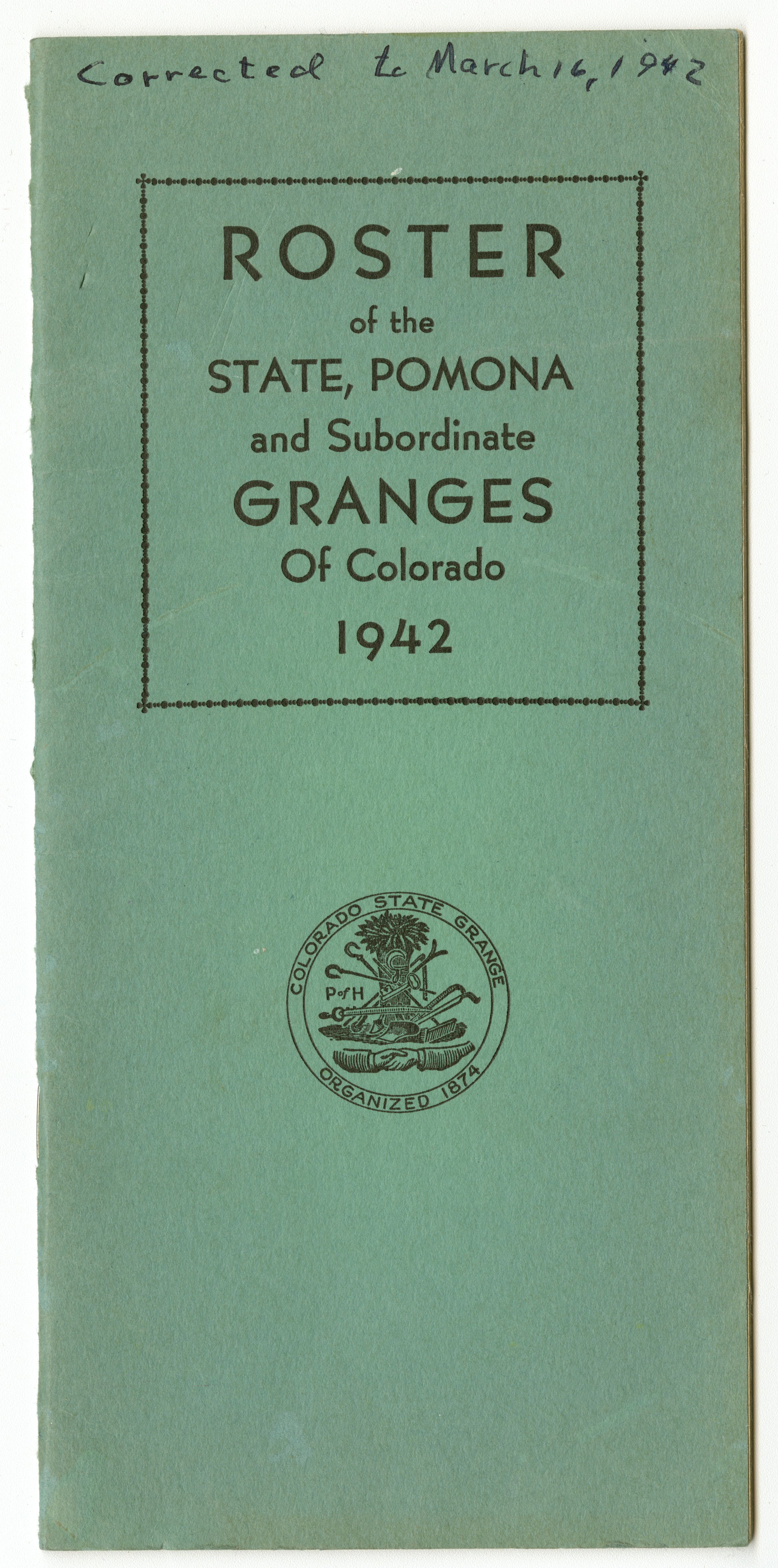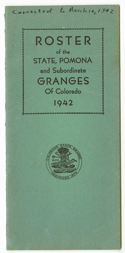 Roster of the State, Pomona, and Subordinate Granges of Colorado, 1942.