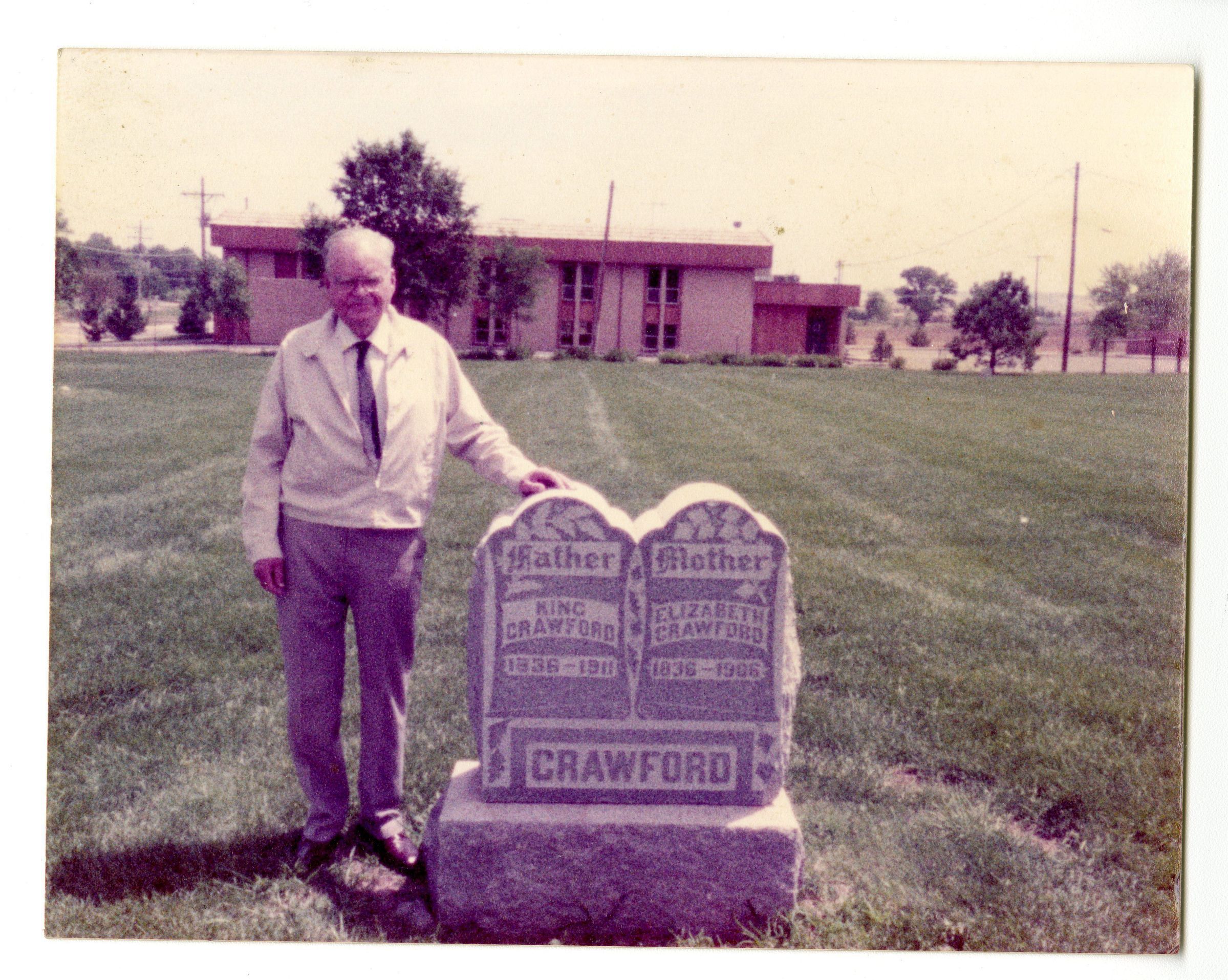 Miles Crawford with his grandparent's grave in Lakeview Cemetery. Probably facing west. Probably 120th in the background.