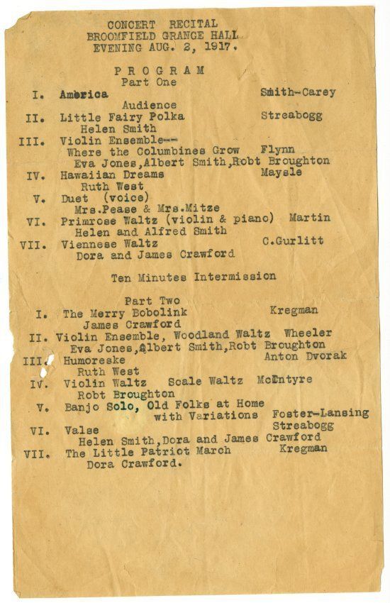 Concert Recital, Broomfield Grage Hall, Evening Aug. 2, 1917.Collection