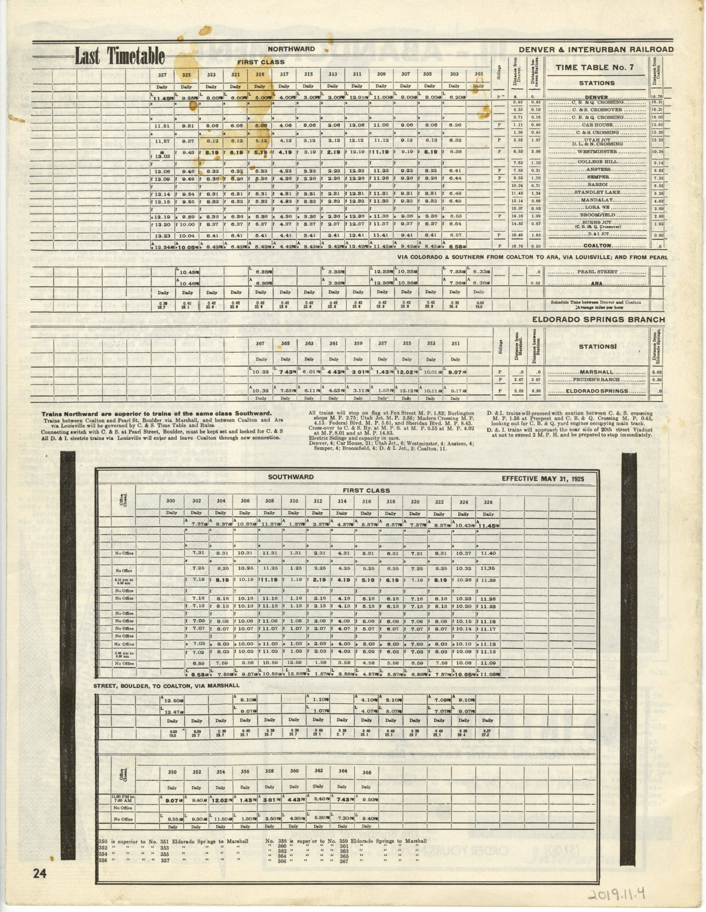 A national periodical published in October 1947 and sold for the price of one US Dollar. Approx 24 pages. Has info on the constuction, operation, and abandonment of the Denver and Interurban Railroad. Contruction: story of building the line, the equipment used, a maps trolley sections, shops and barns, cars, and a newspaper account of the opening. The section labelled "Cars" has a rectangle cut out of the middle of the page for an unknown reason. Operation: description deaturing the "Whiteford Photos". Abandonment: description deaturing the last timetable for the railroad. There's what seem to be coffee stains on the upper left corner of both the front and the back of the periodical.Collection