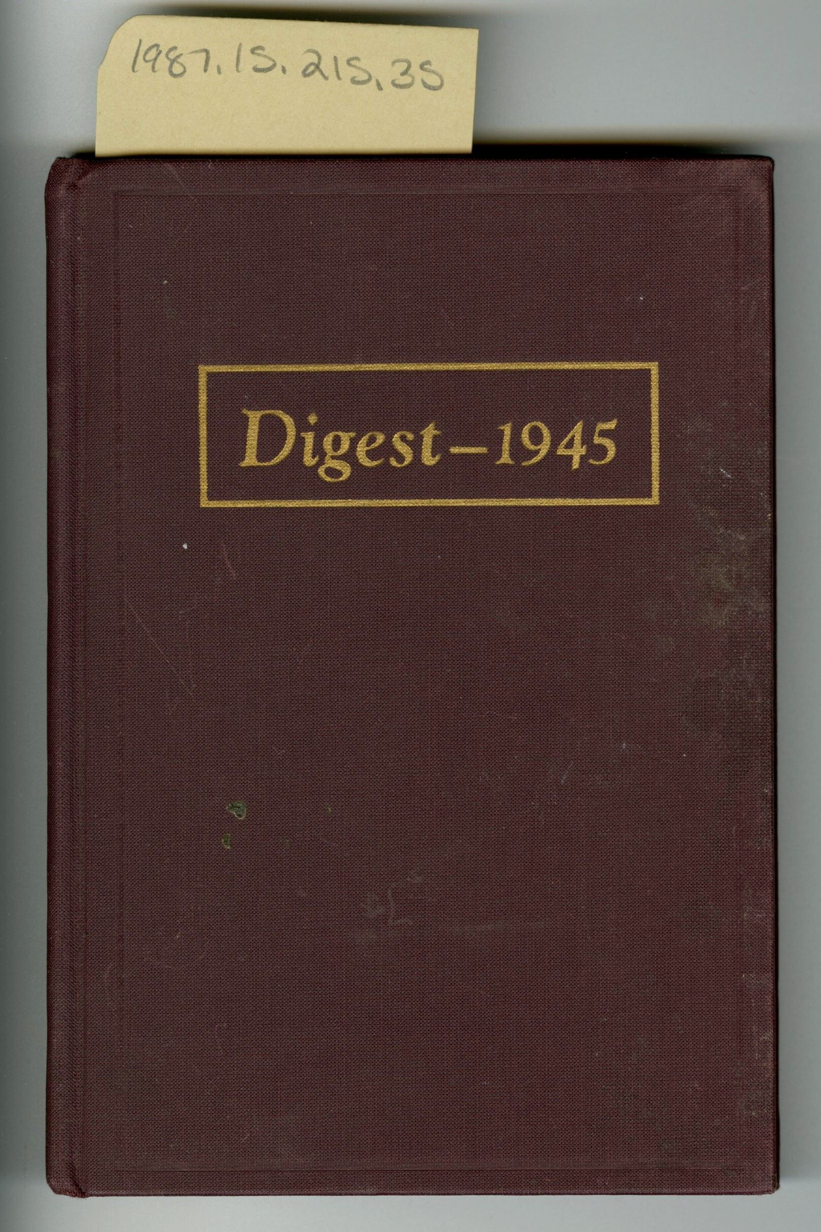 Dark red cover, book. Digest-1945. "Constitution and Digest of the Laws and Enactments of the Order of Patrons of Husbandry."