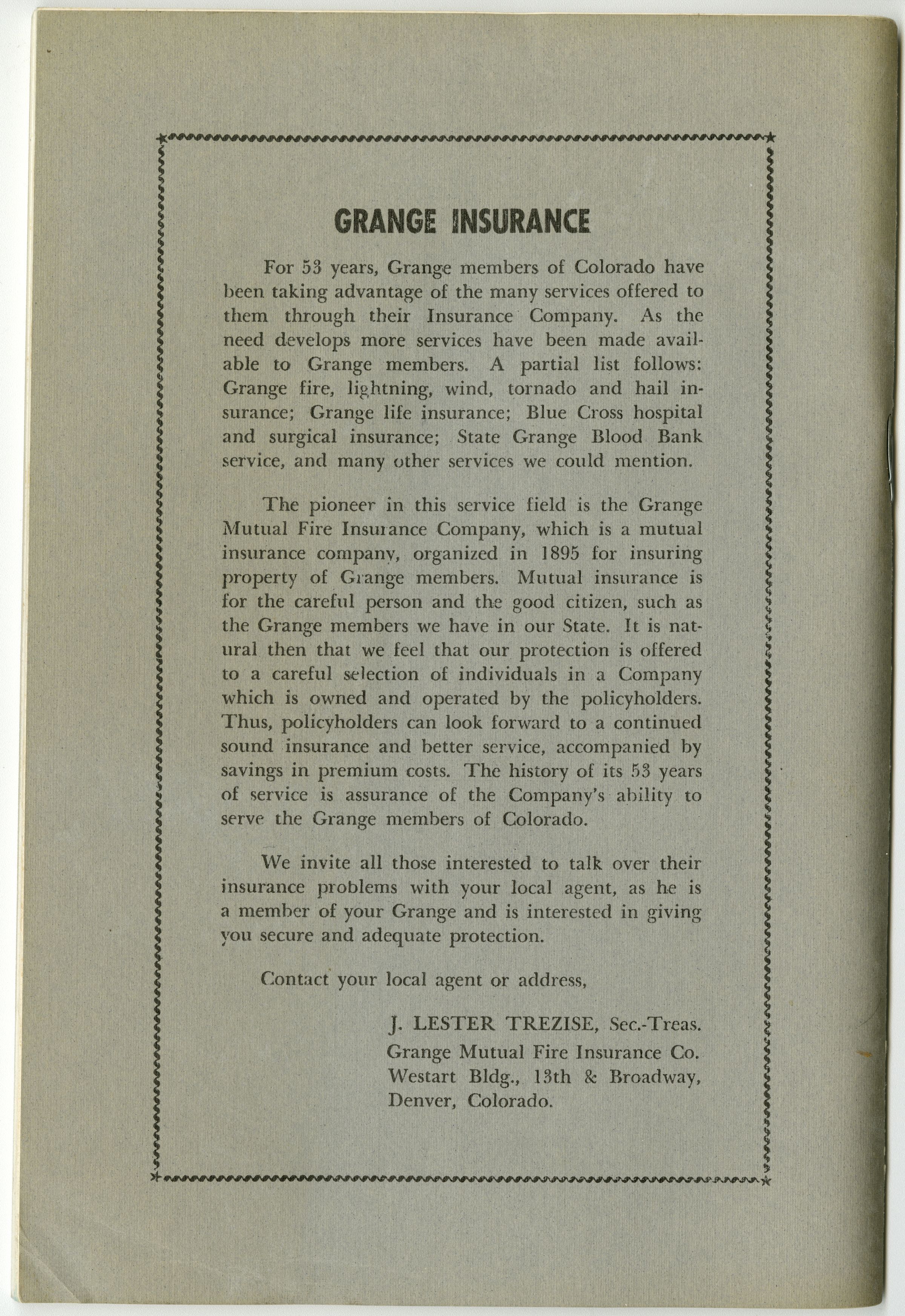 Grey cover, booklet, Colorado State Grange seal in center.Collection