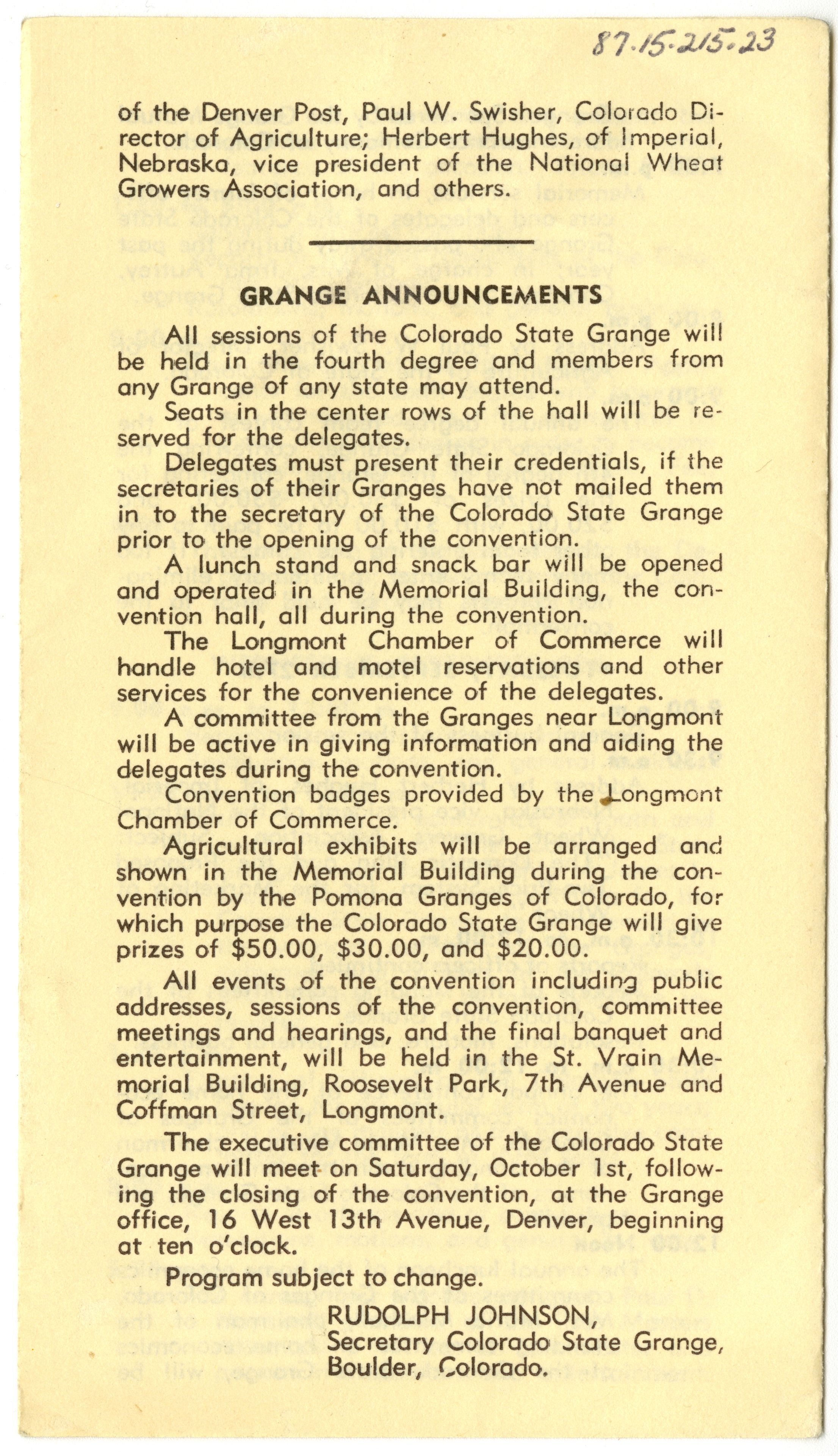 Colorado State Grange seal in center of cover.Collection