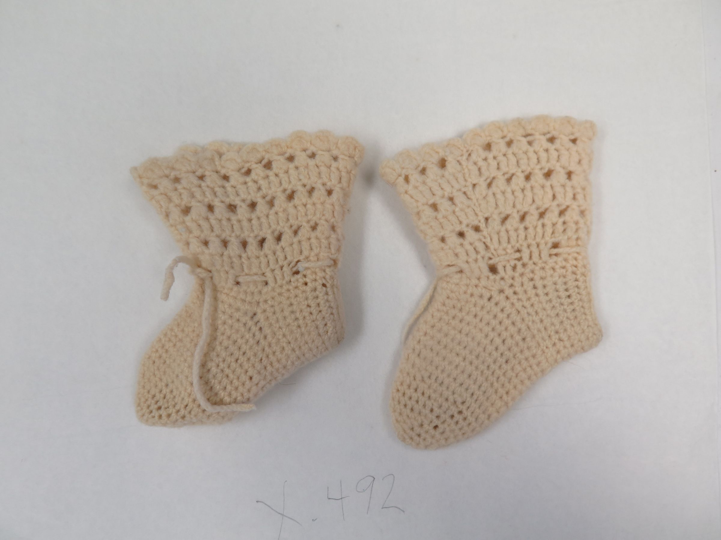 This is a pair of cream colored knit booties. The booties measure 3" (w) x 5" (l) each.