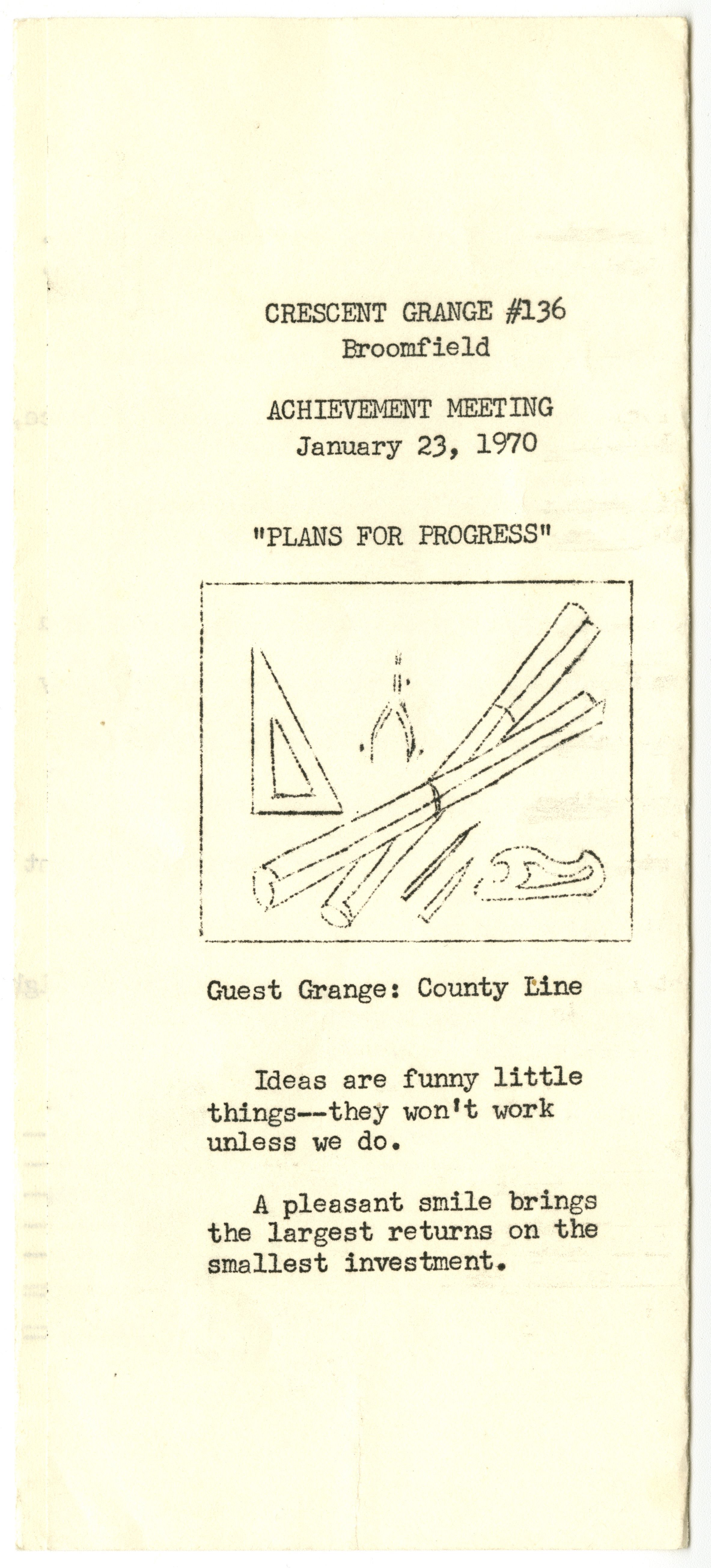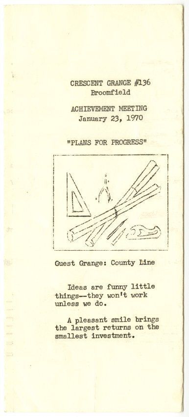 Crescent Grange #136 Broomfield. Achievement Meeting January 23, 1970. "Plans for Progress".