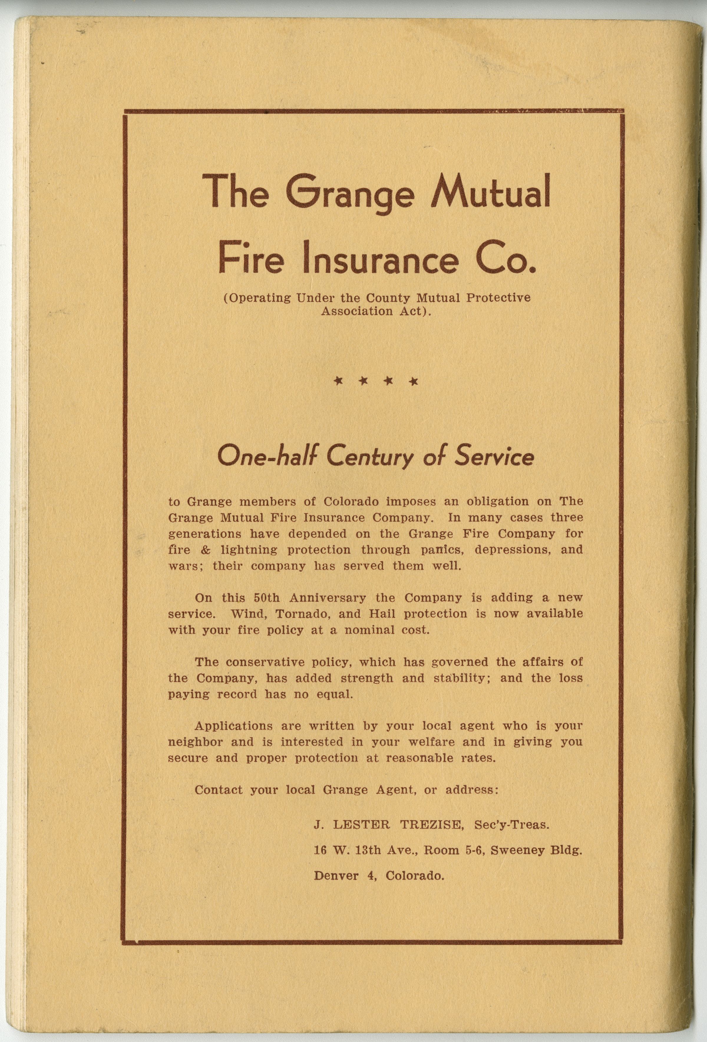 Brown cover, Colorado State Grange seal on cover front.Collection