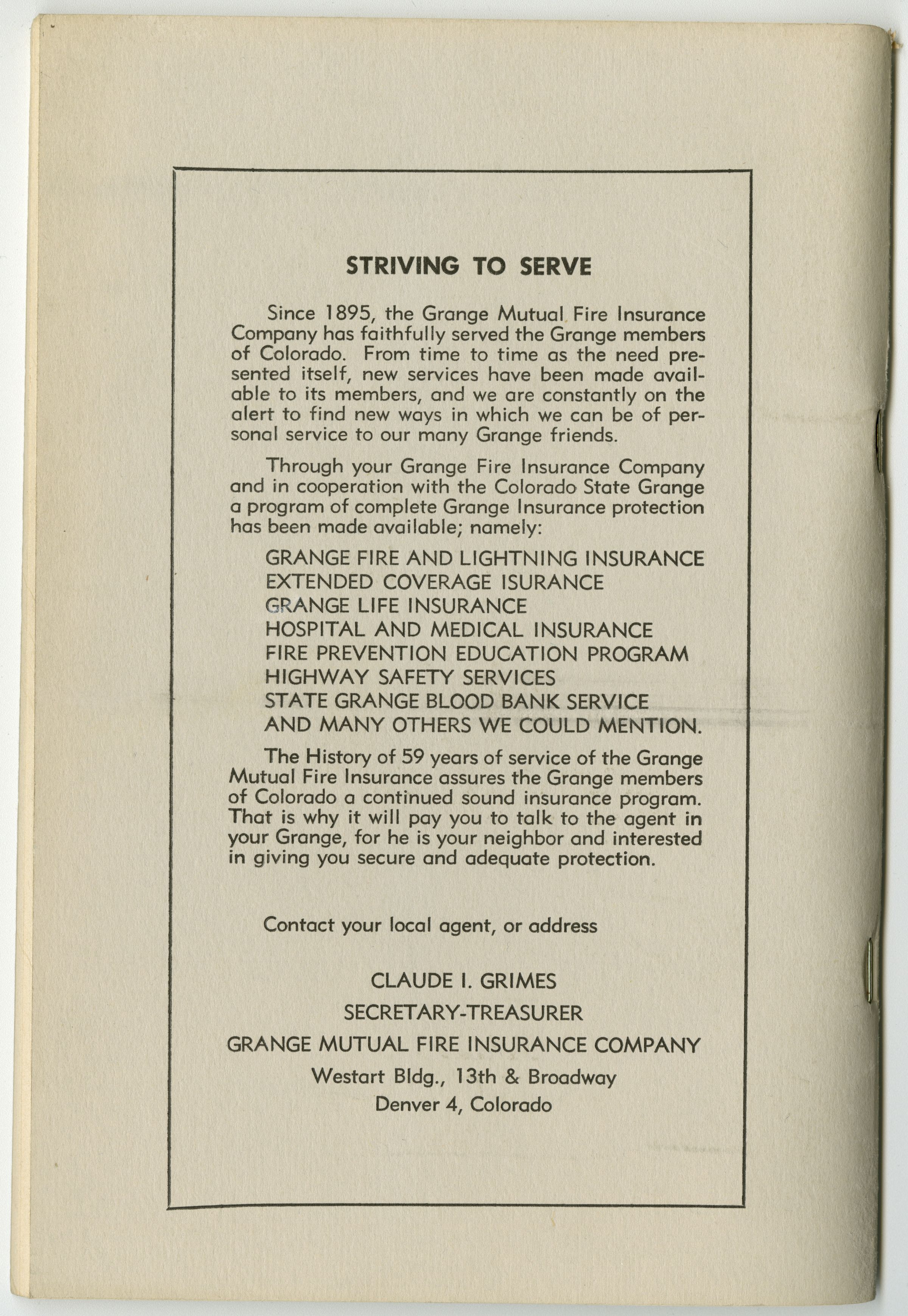 Grey cover, Colorado State Grange seal on cover.Collection