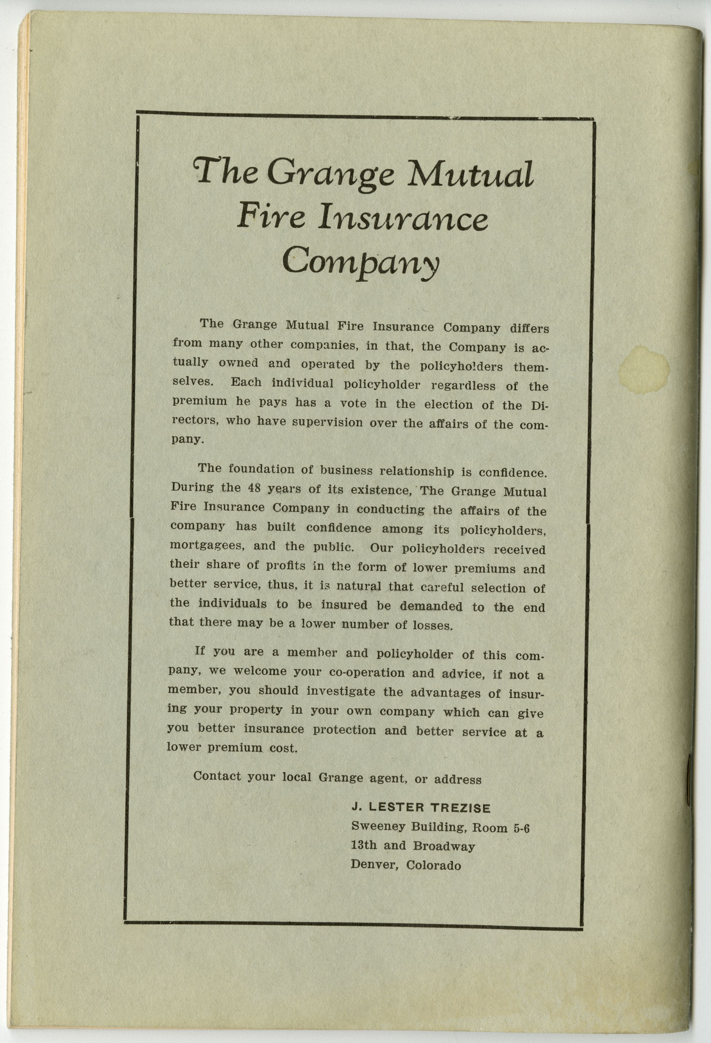 Grey cover, Colorado State Grange seal on cover.Collection