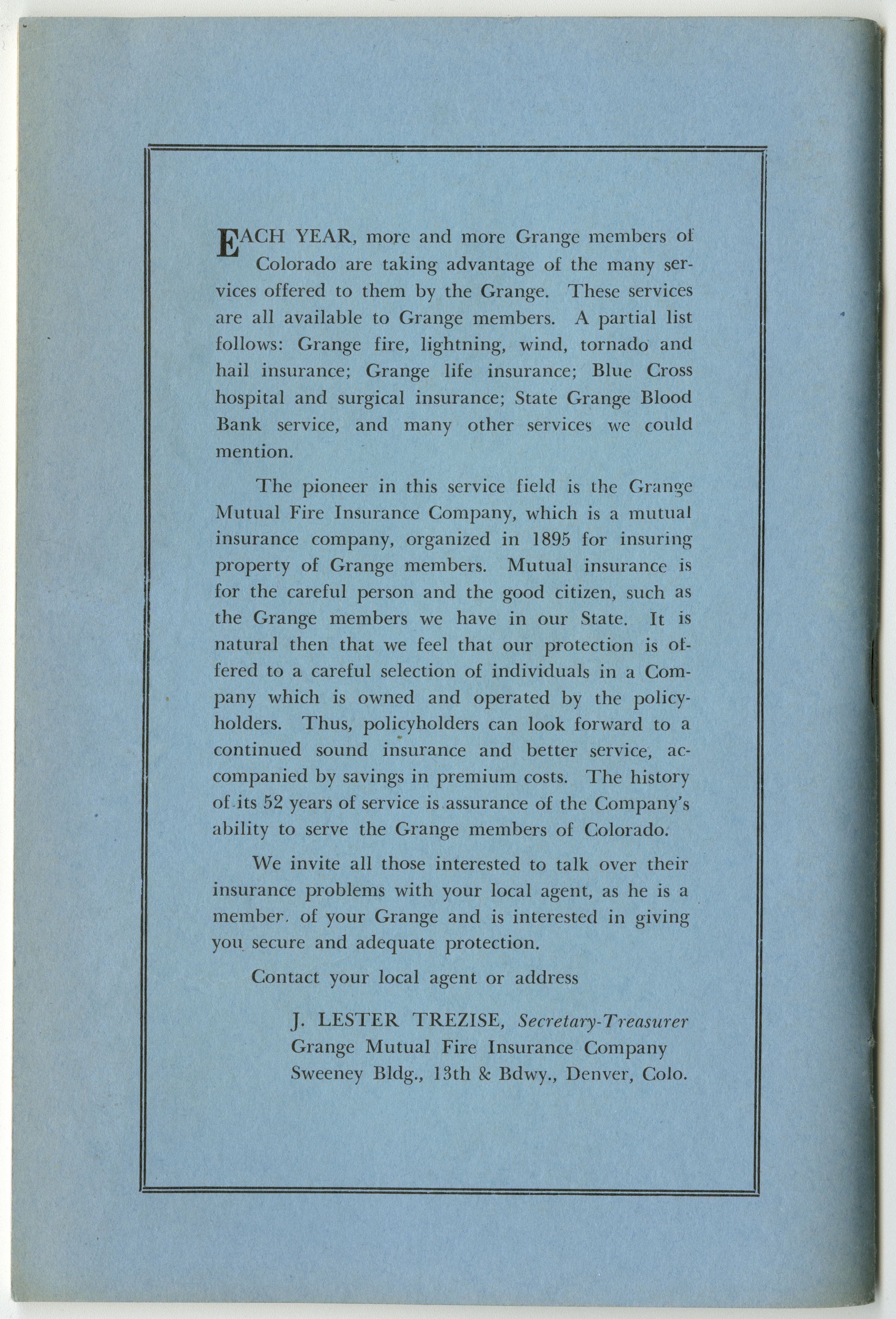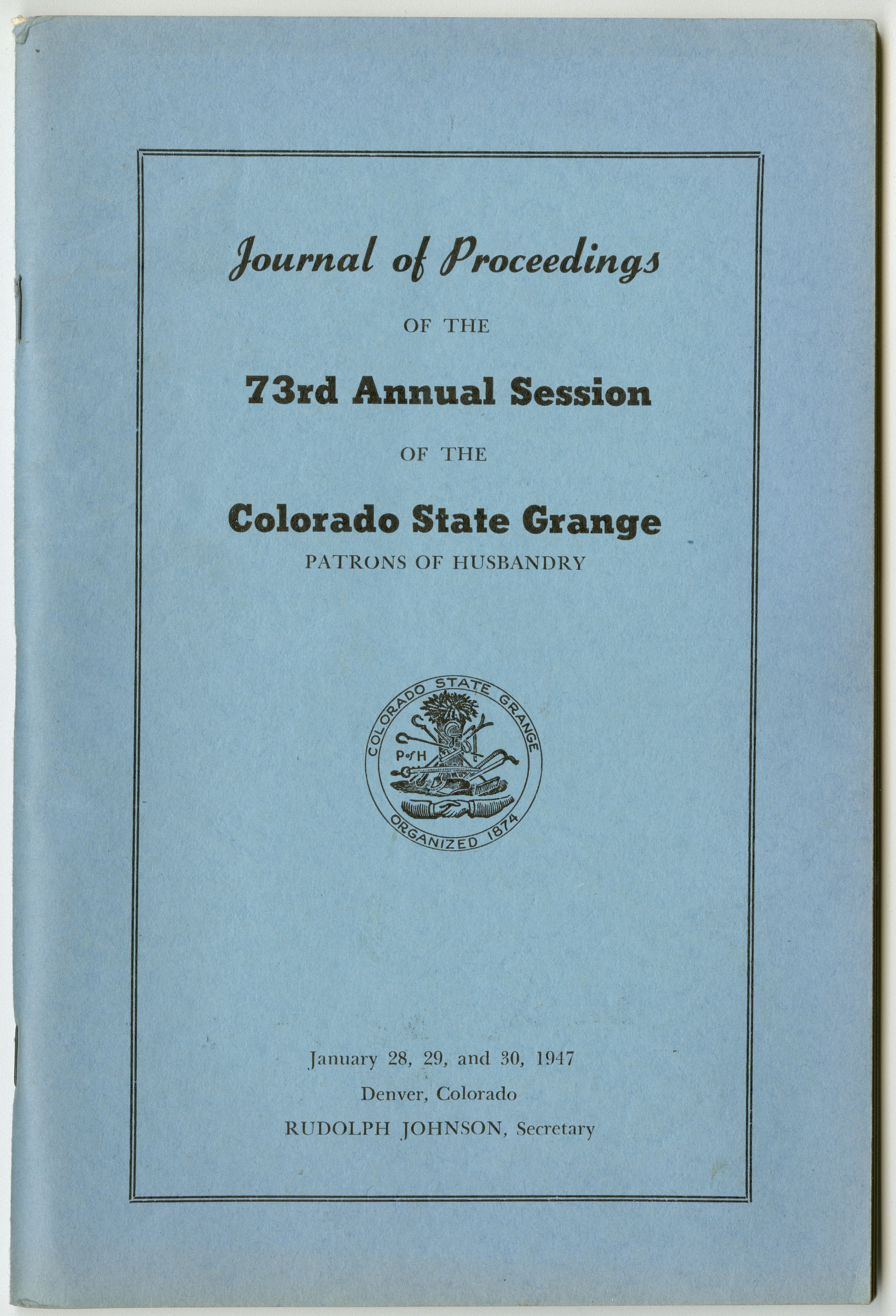Journal of Proceedings of the 73rd Annual Session of the Colorado State Grange, Patrons of Husbandry. January 28, 29, and 30, 1947. Denver, Colorado. Rudolph Johnson, Secretary.
