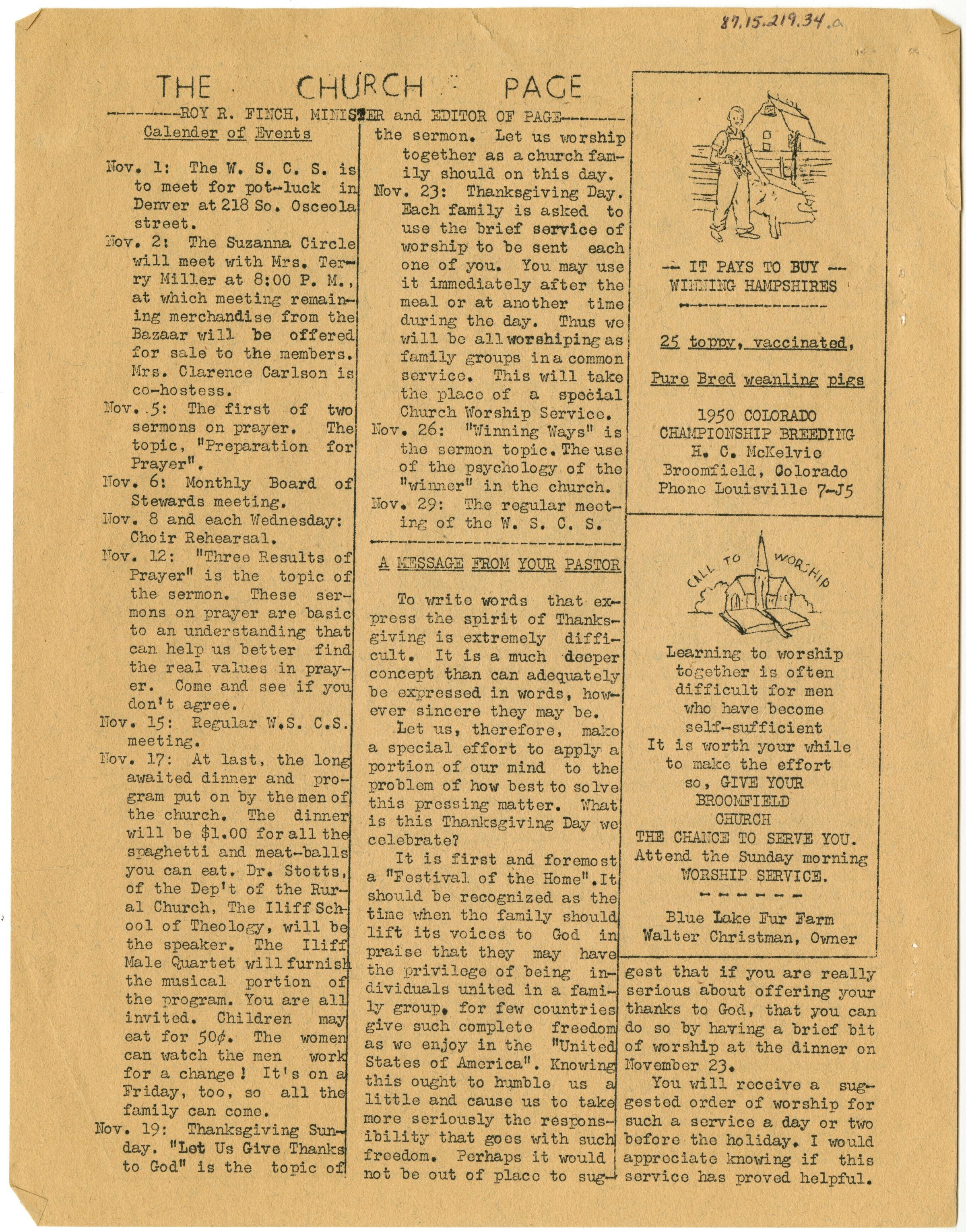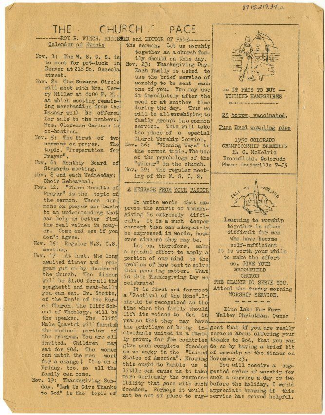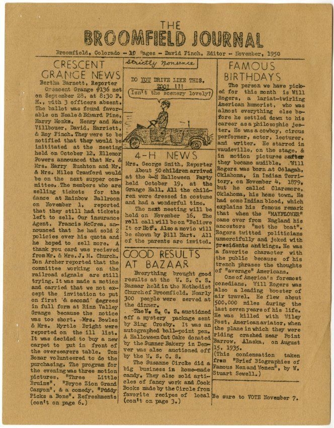 a: Broomfield, Colorado - 10 pages - David Finch, Editor - November, 1950