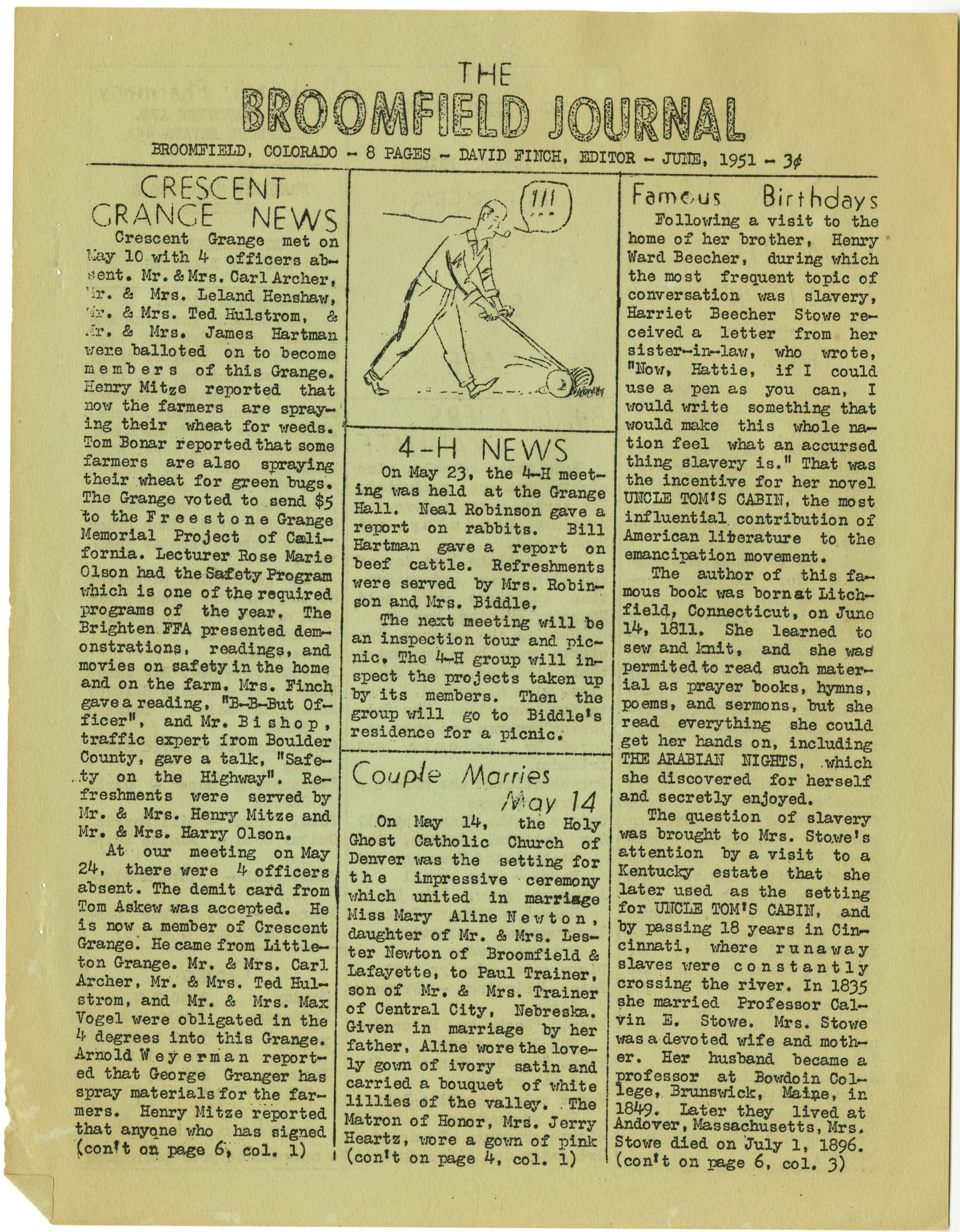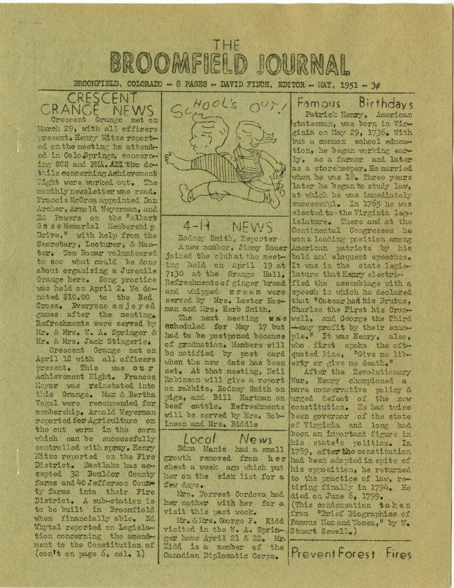 c: Broomfield, Colorado - 8 Pages - David Finch, Editor - June, 1951 - 3c.Collection