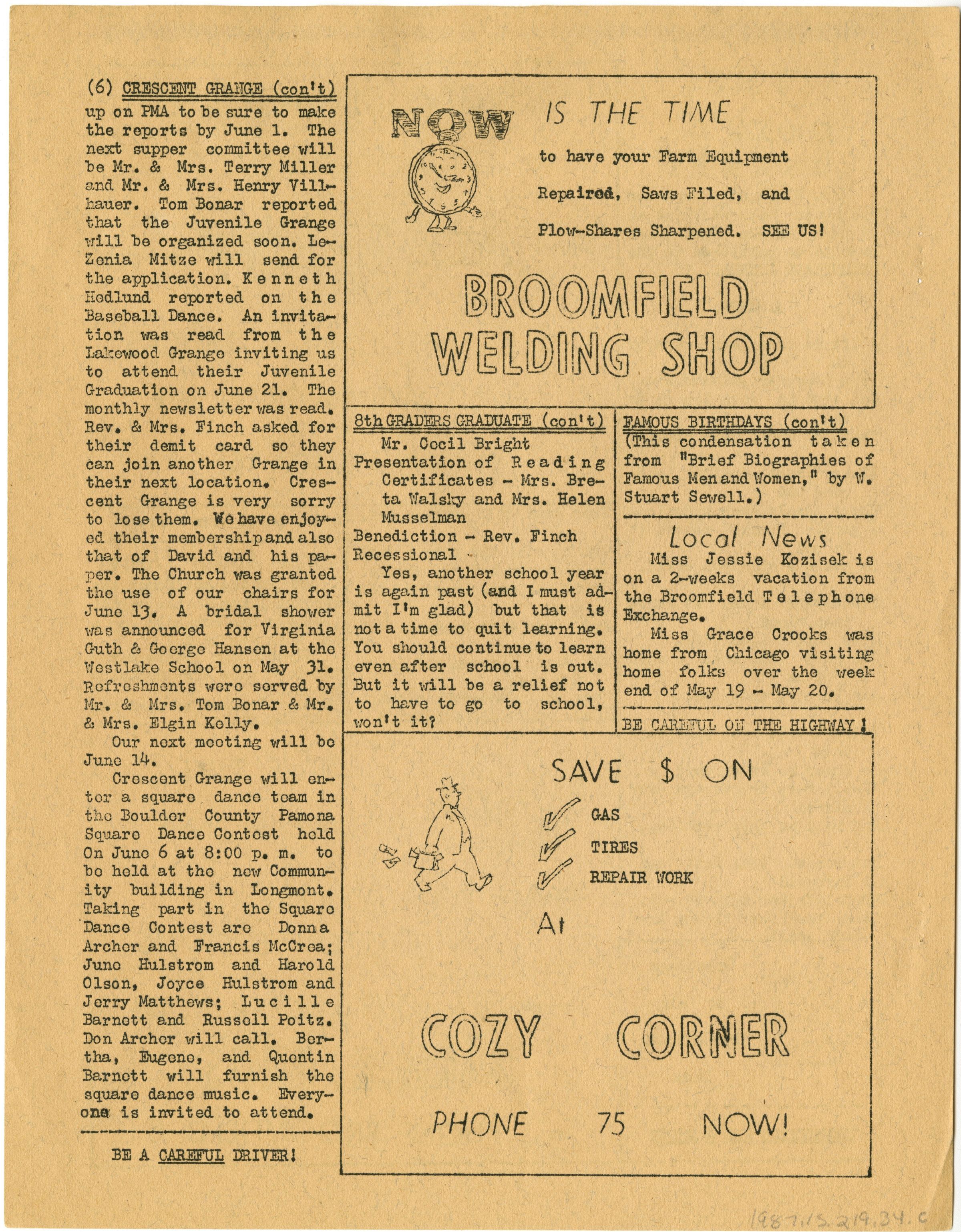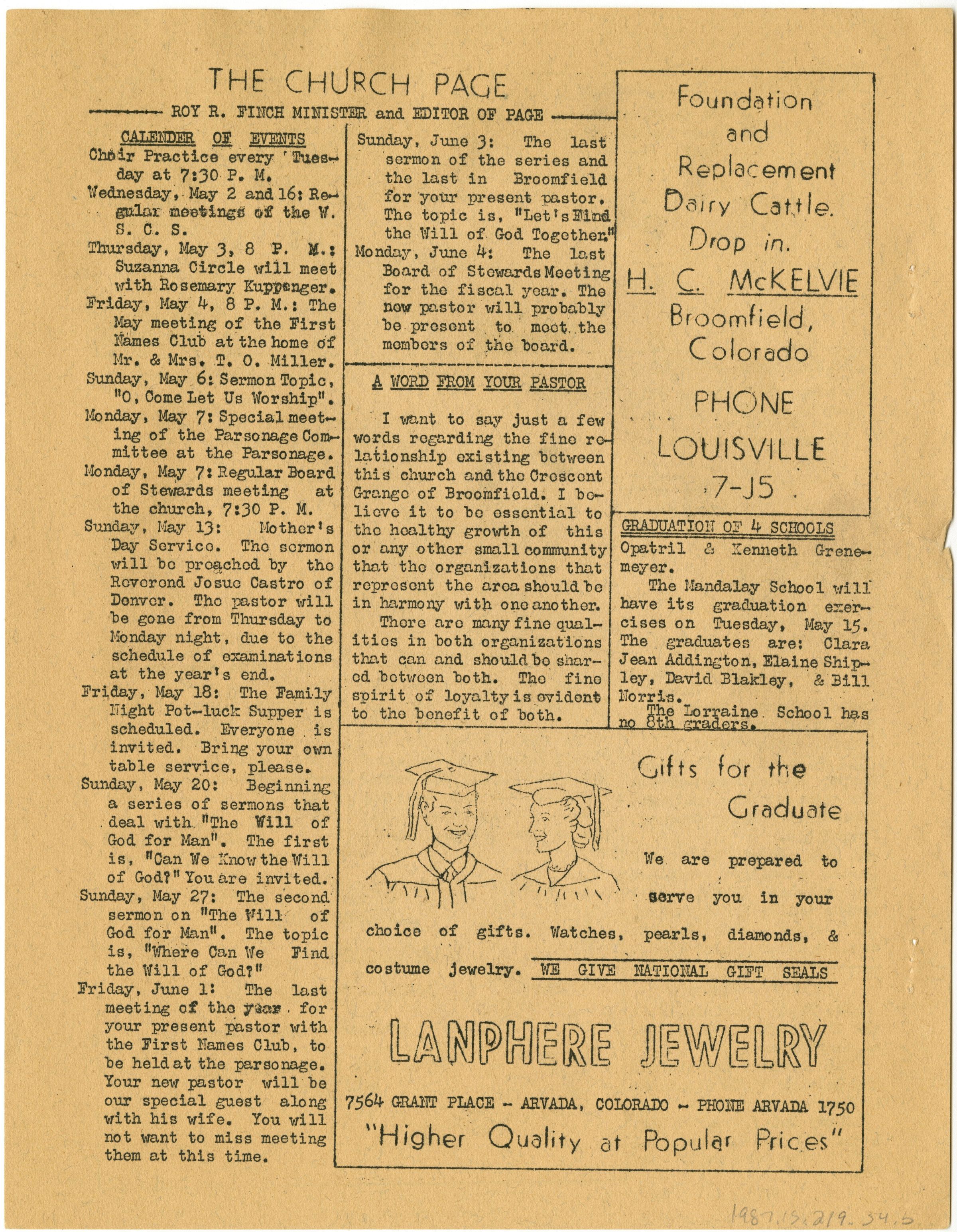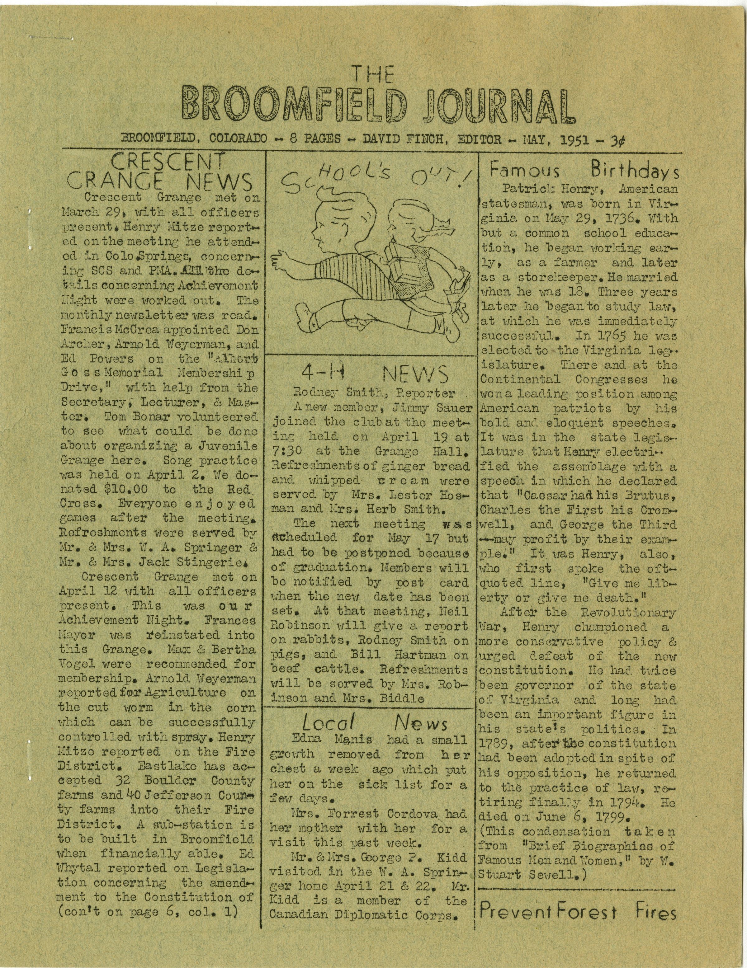 b: Broomfield, Colorado - 8 Pages - David Finch, Editor - May 1951 - 3c.