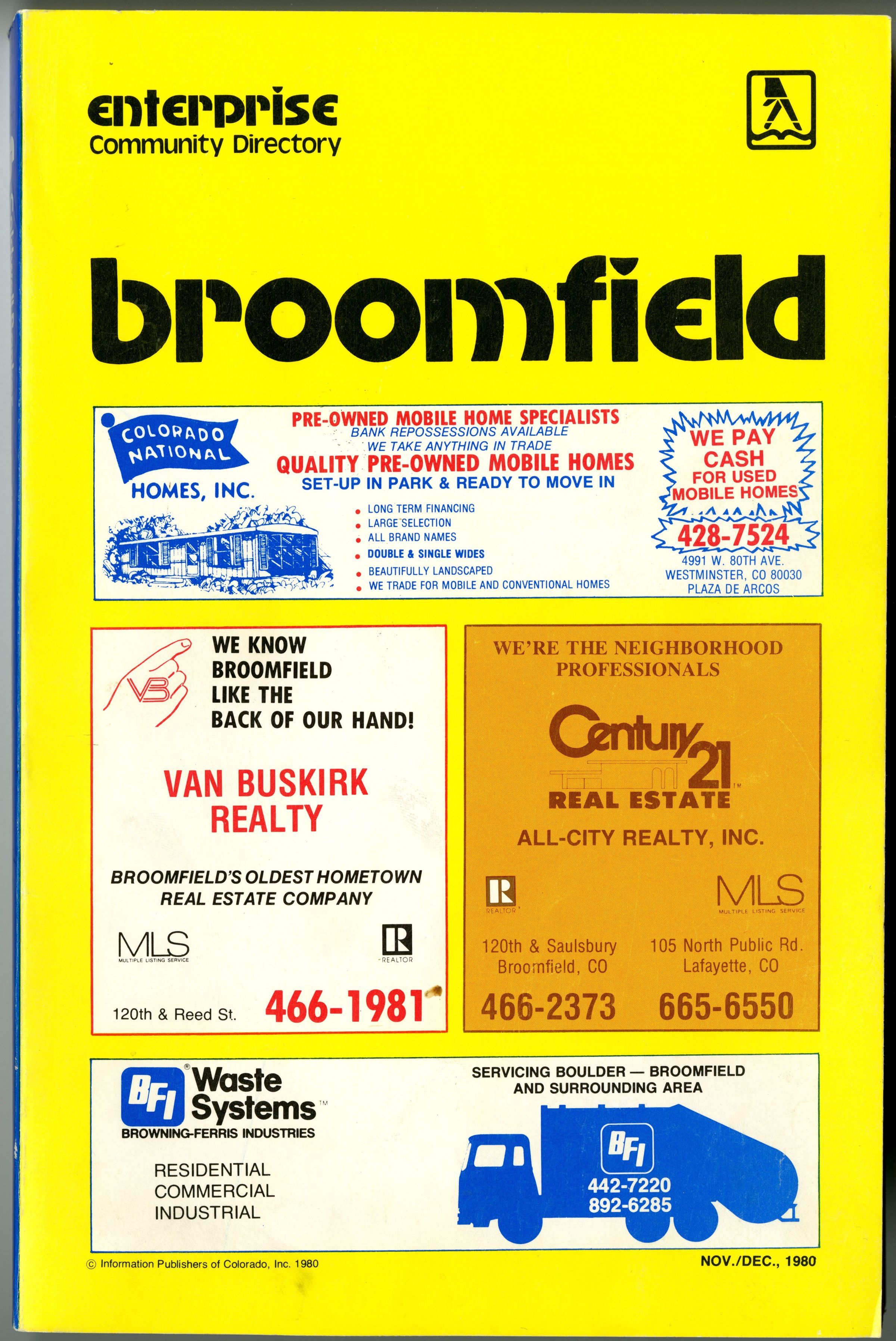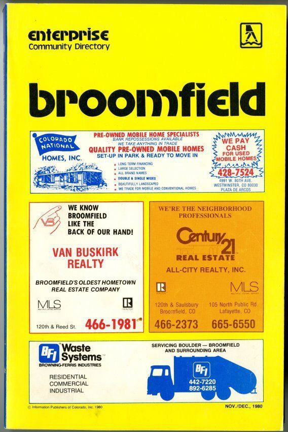 Enterprise Community Directory, Broomfield. Yellow cover. No./Dec., 1980. Telephone book. Names, addresses, phone numbers. Several ads.