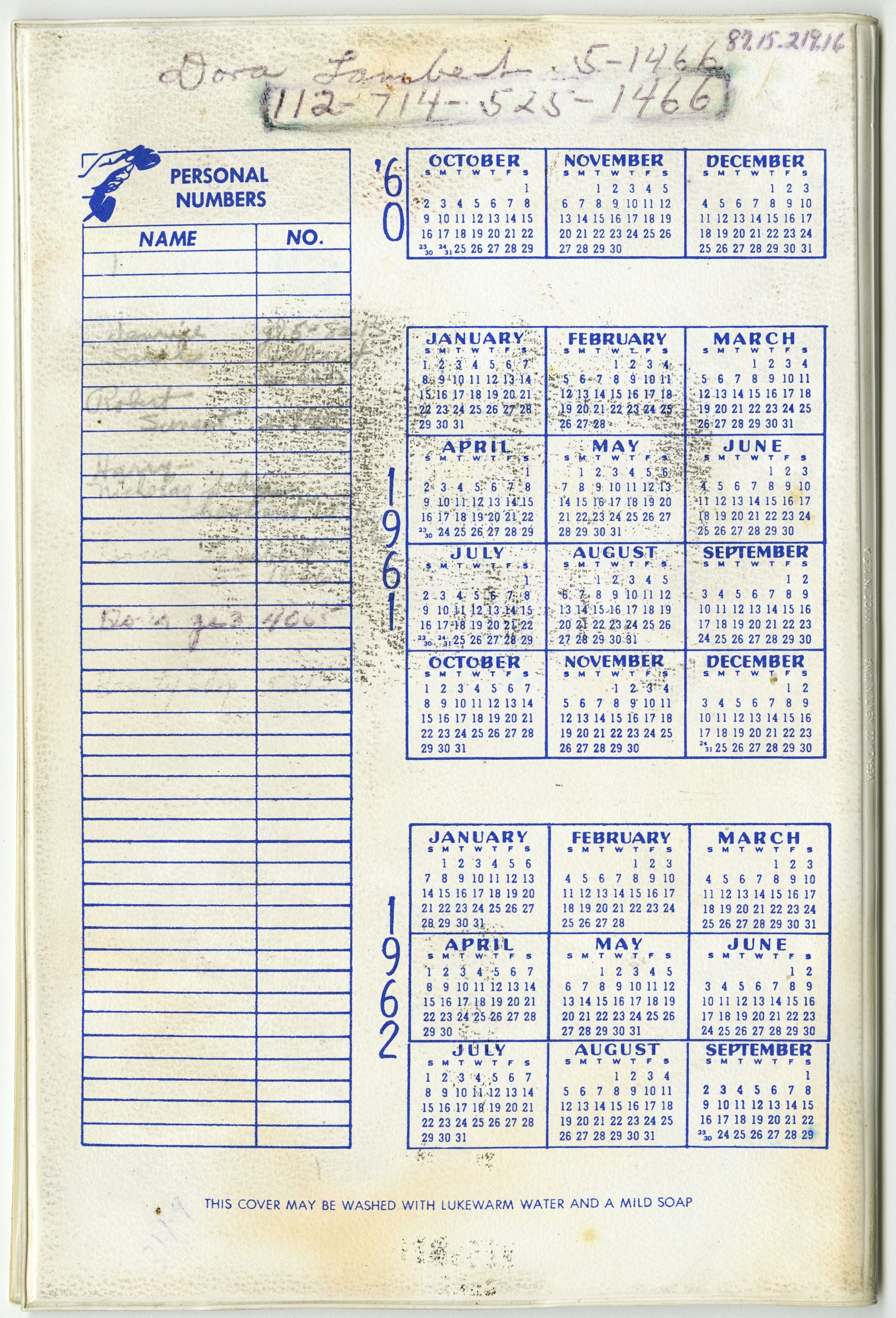 Inside back and front covers, further names and numbers are written in. Including Harry Crawford.Collection