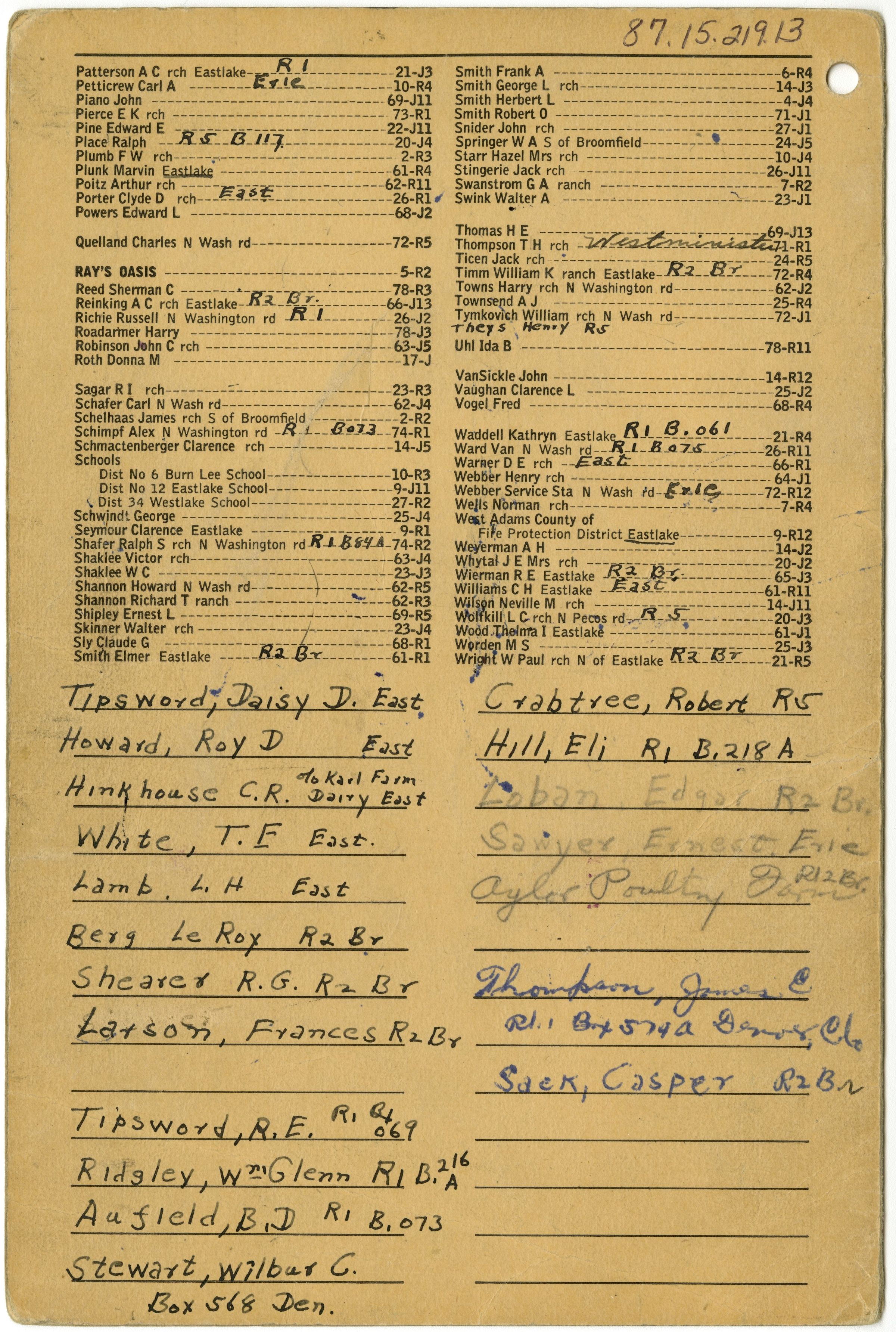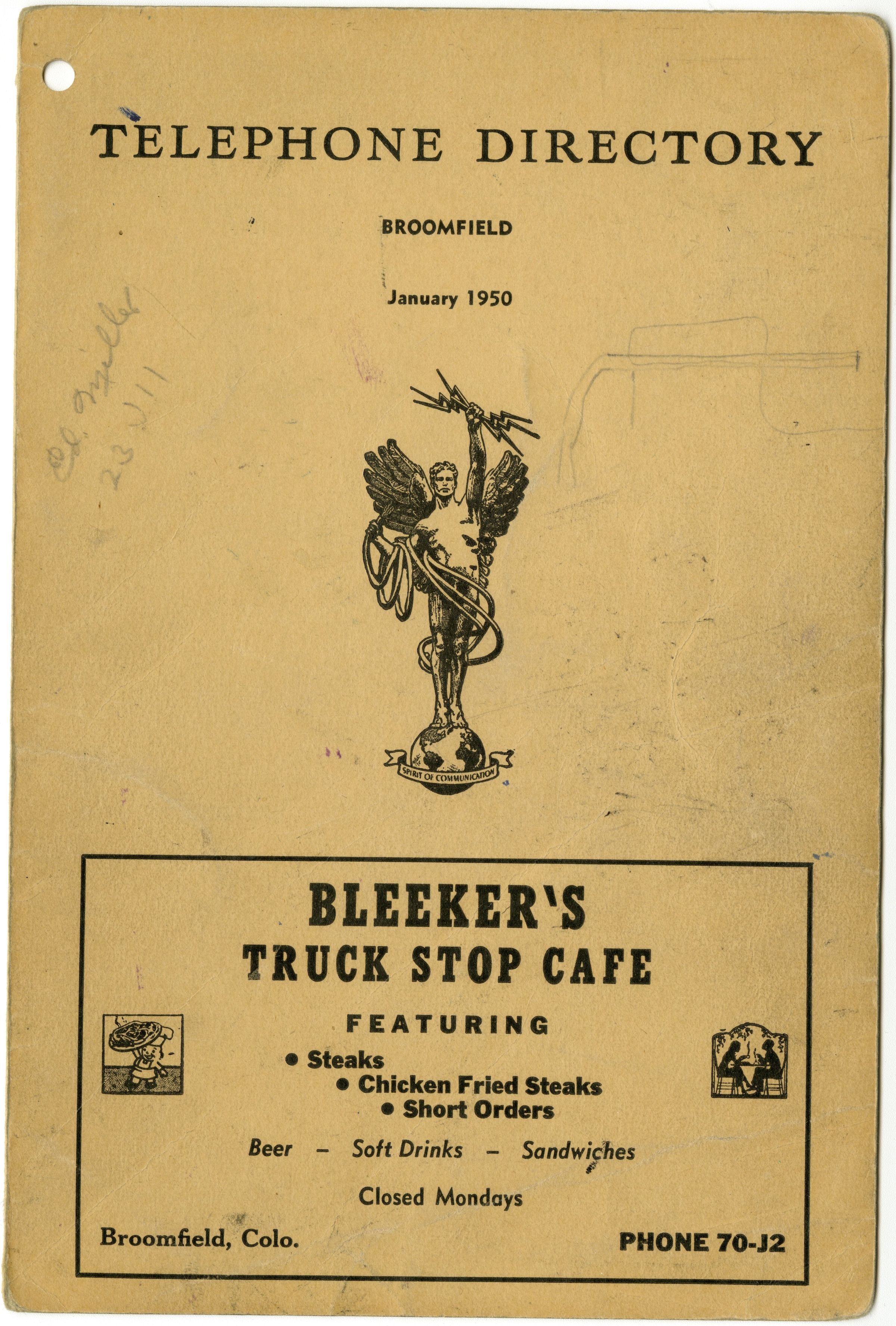 Telephone Directory, Broomfield, January 1950. Some handwritten notes within the directory, and names written on back.