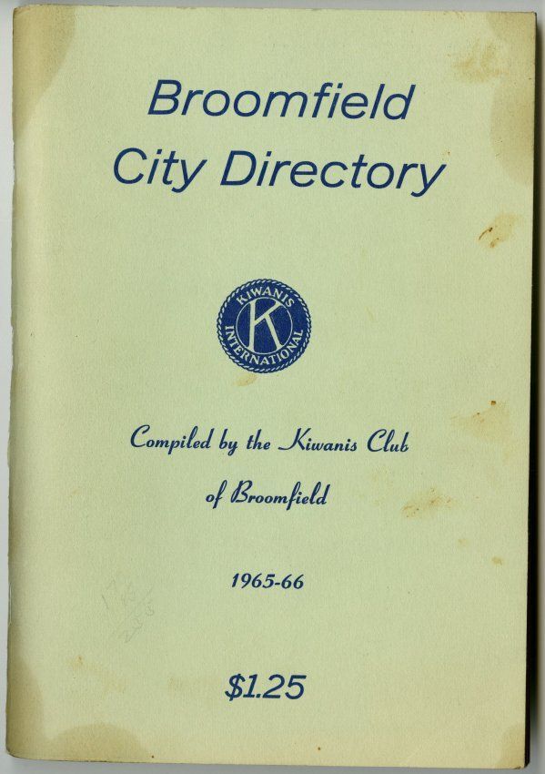 Broomfield City Directory, Compiled by the Kiwanis Club of Broomfield, 1965-66. $1.25.