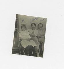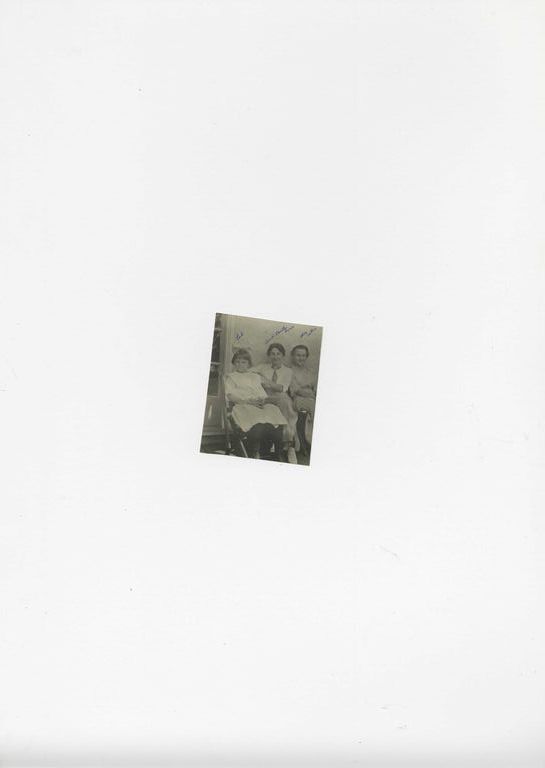 Black and white photograph of four girls. Handwritten in ink are the names of two of the girls. The girl furthest to the left is Lib, and the girl furthest to the right is Sal.