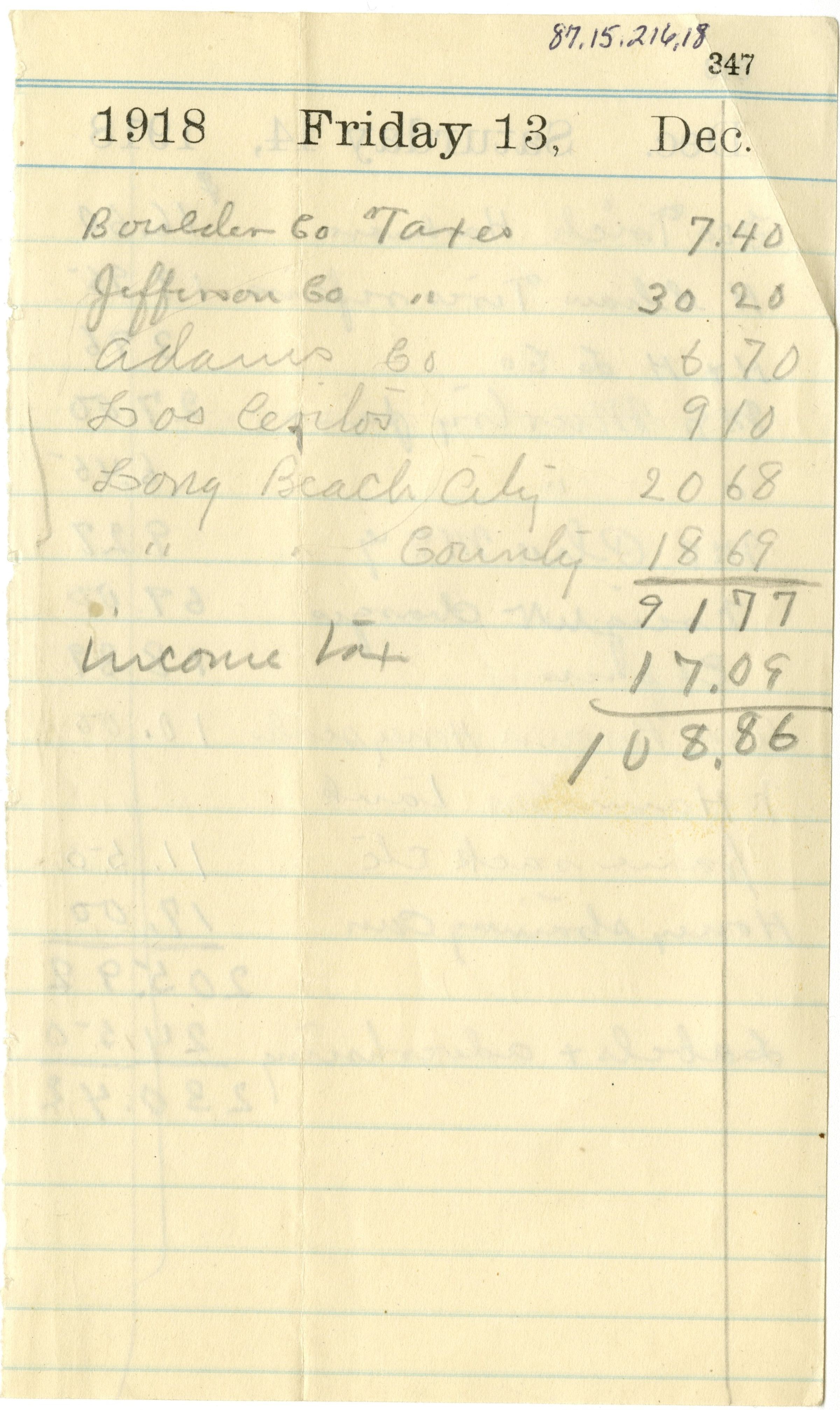 Back: 1918 Friday 13, Dec. List of taxes and numbers.Collection